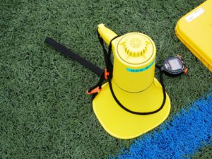 コーン。目印。これがないと、コースがわからないのです。