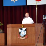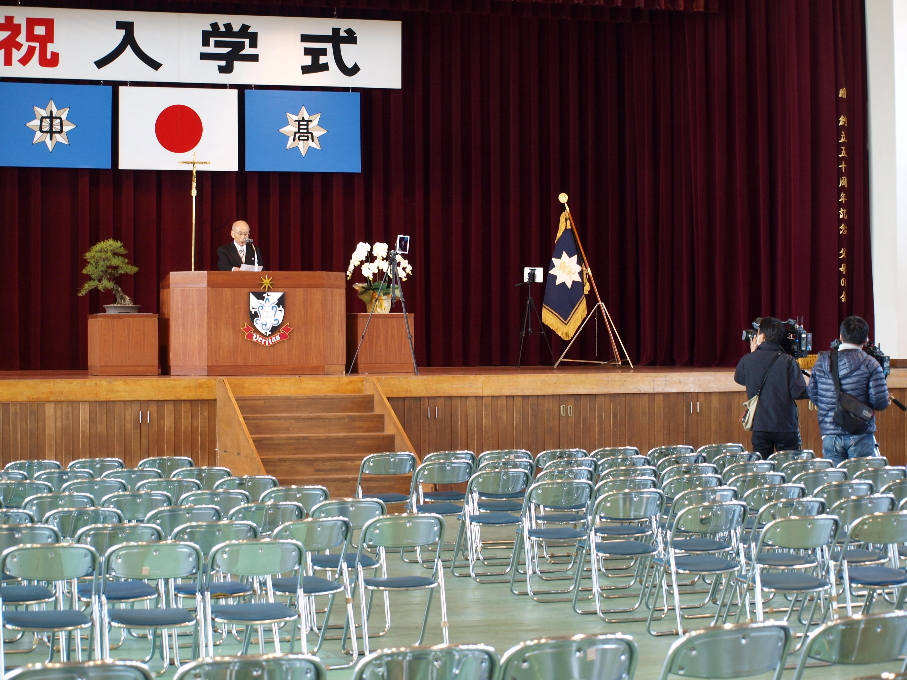5.理事長式辞,聖書朗読(中一学年部長) 6. 校歌斉唱 7. 閉式の辞