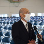 撮影後にテレビの取材を受けました。その後,担任挨拶を撮影しました。