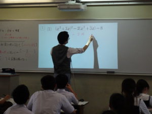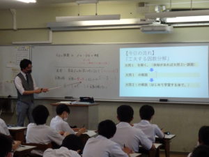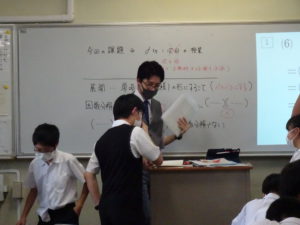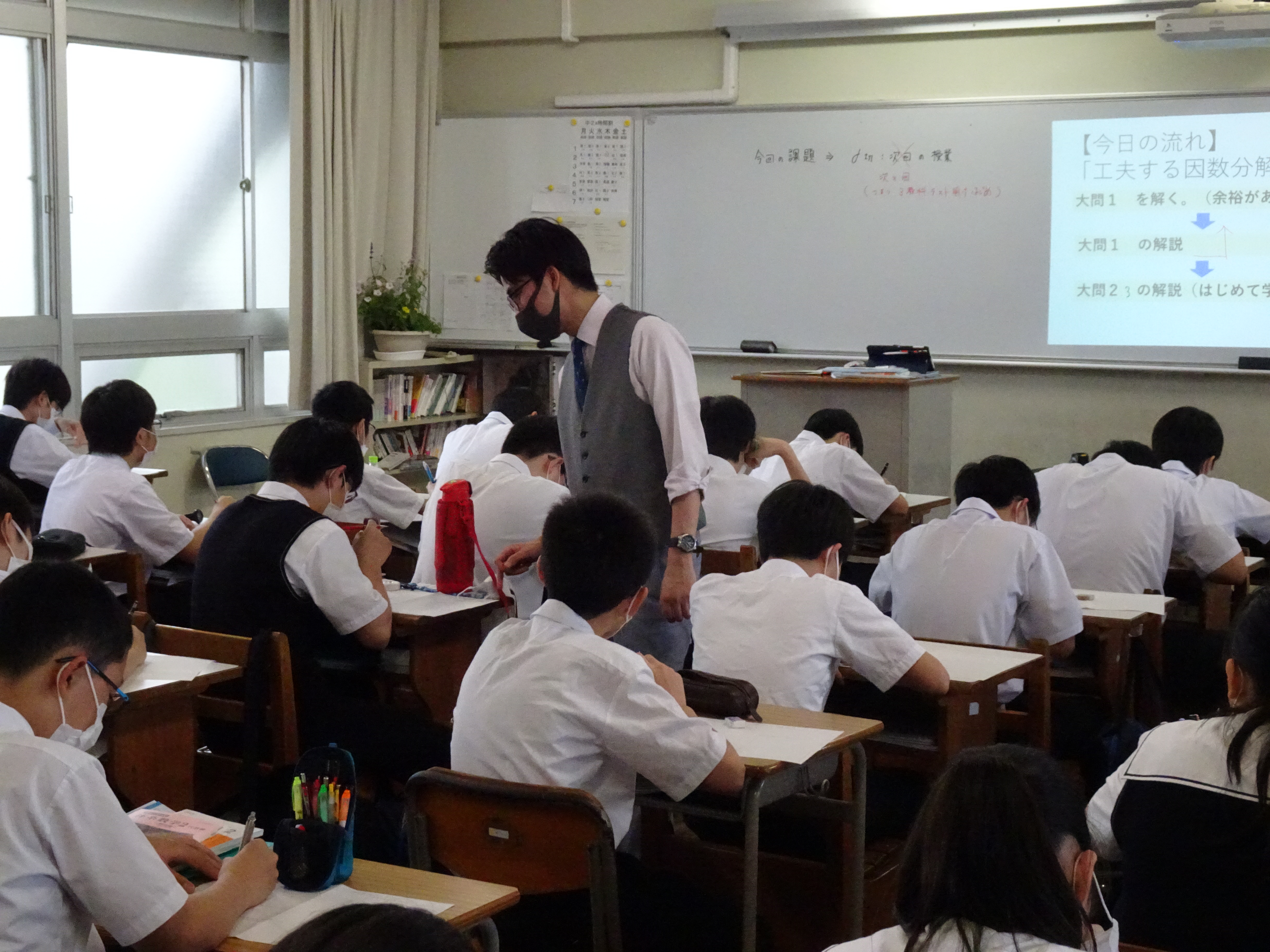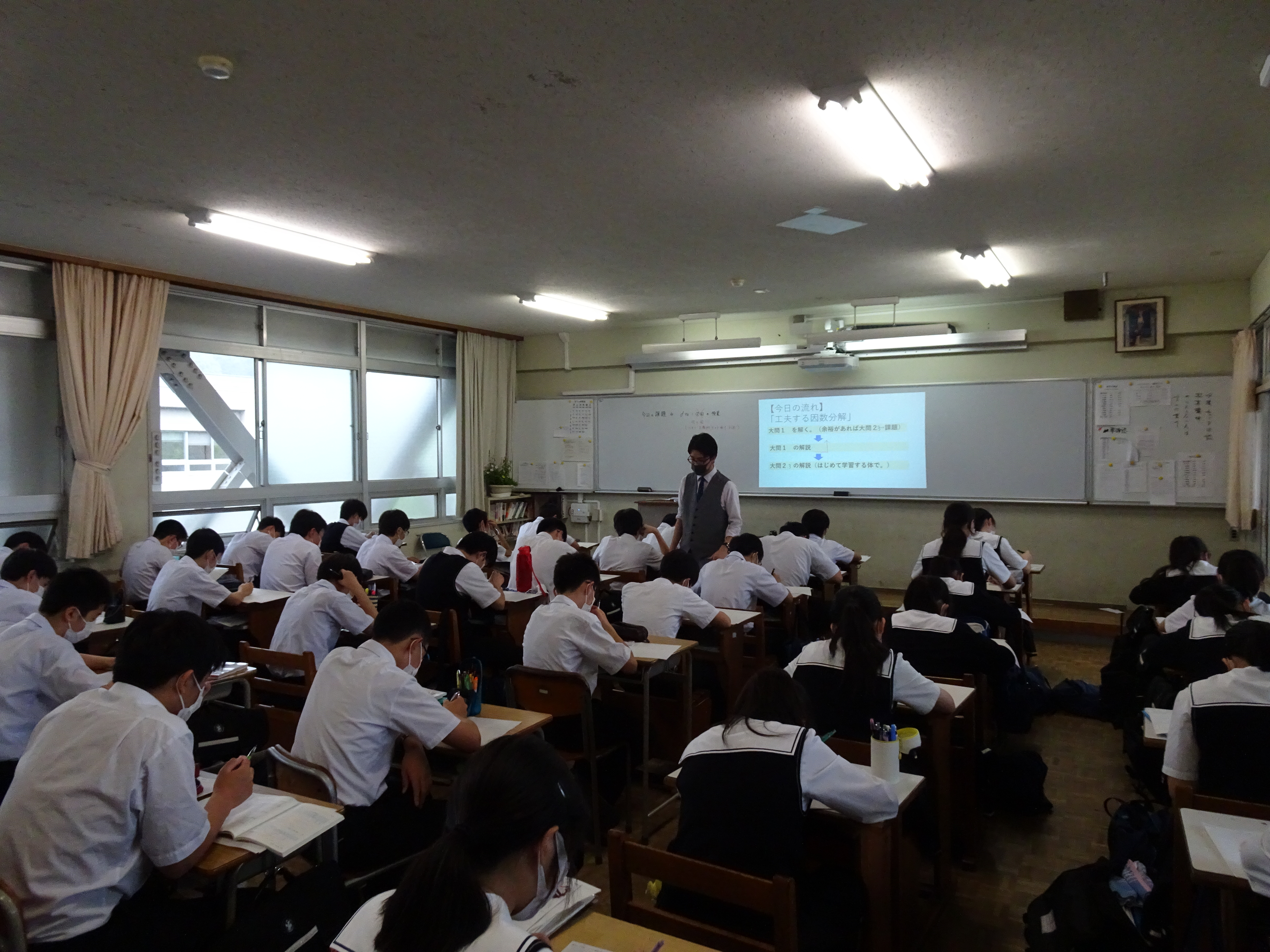 まずは生徒が自力で問題を解いています。じめじめと蒸し暑い中ですが、みな真剣に取り組んでいます。