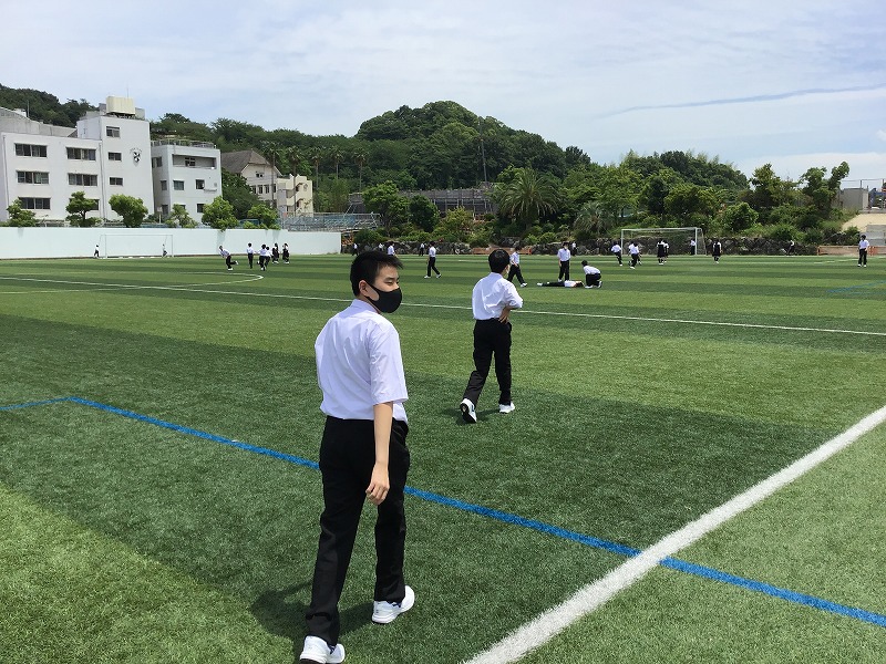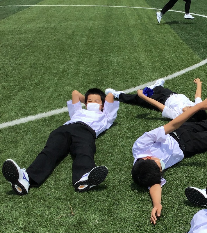 ボールなどの共用物の使用は不可、といった制限はありますが、休み時間に広い場所で体を動かす気持ちよさを味わっていました。