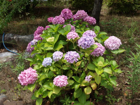 中庭で、梅雨のシンボル紫陽花を見つけた。
