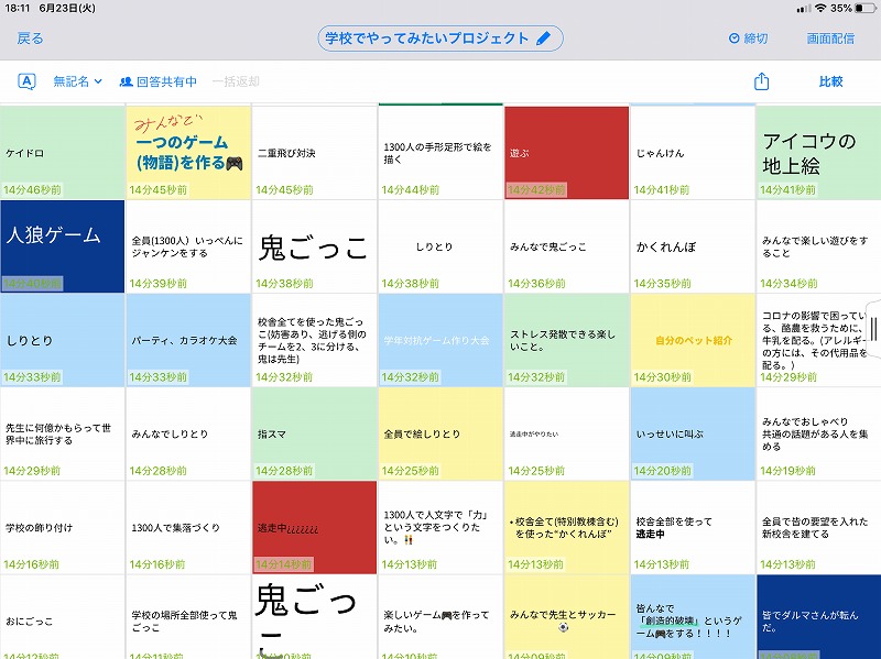 これは「人件費無料の愛光生1300人を使ってやってみたいプロジェクト」の生徒のアイデアの一部です。