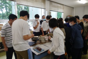 今回は少し前にはなりますが,7月12日(日)に行われた自然探究部の新入部員体験・歓迎会の様子をお伝えします。午前9時に生物実験室に部員が集合しました。