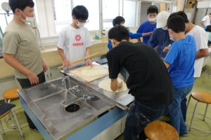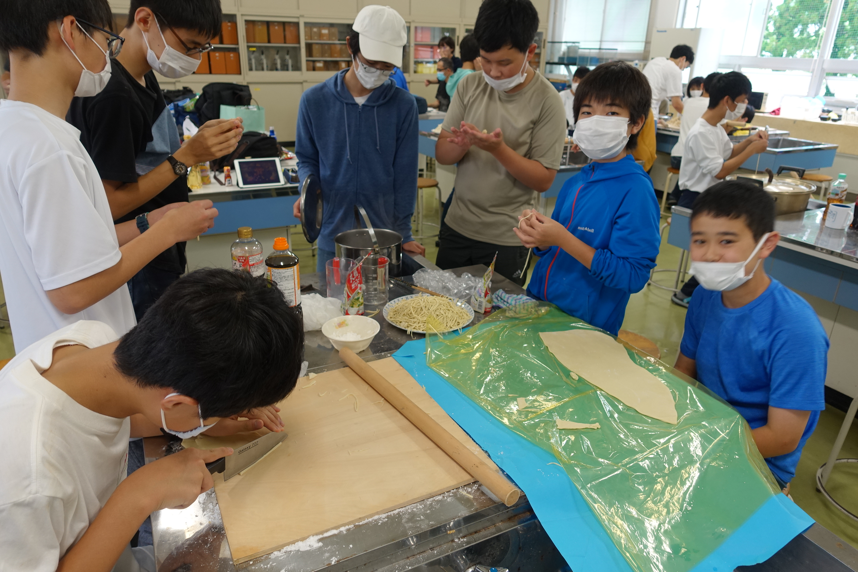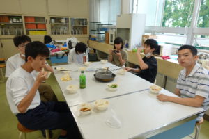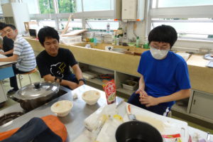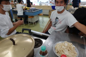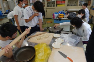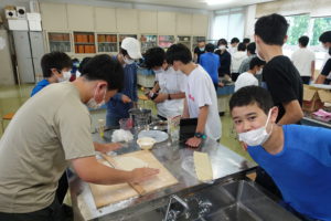 ゼリーや麺料理をみんなで協力してつくっていました。