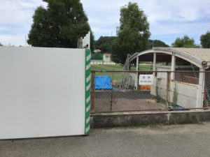 工事によって、この場所にあったグラウンドへの入り口がなくなりました。校舎の方角へ遠回りになります。