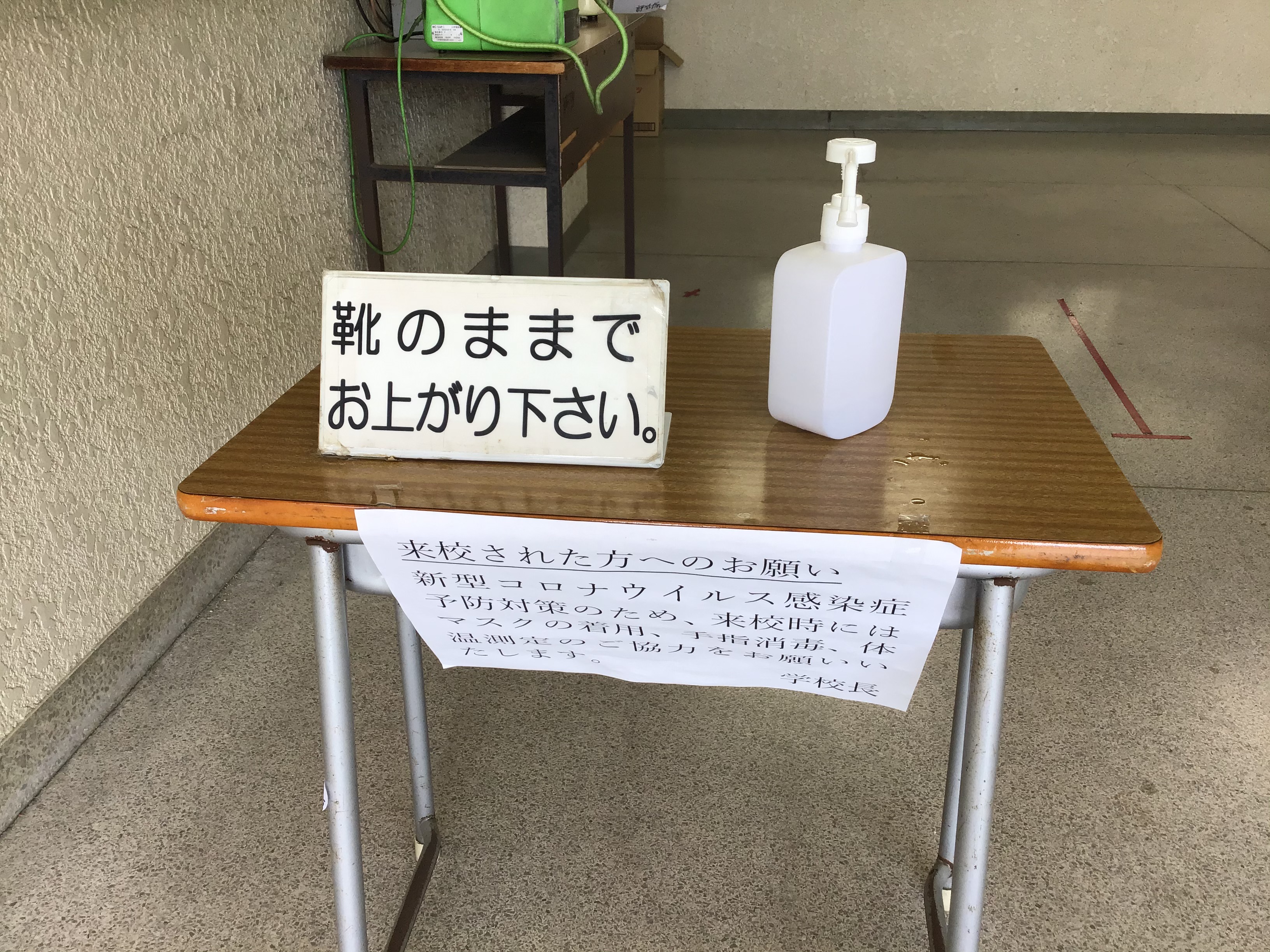 これはもうありふれた光景になってしまった入り口のアルコール消毒液。さて、この日常はいつまで続くのでしょうか?