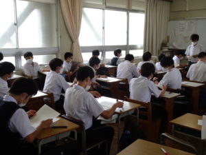 周りの生徒と話したり、自分の答案をじっと見つめたり。