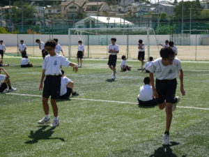 久々の外での運動であるためか、生徒も真剣ながら、楽しそうに体を動かしています。