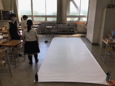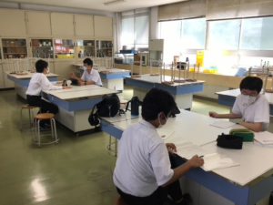 生物実験室では、自然探究部のみなさんが何やら相談中。