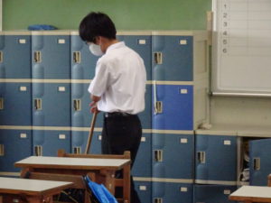 なぜか掃除をしている生徒がいました。