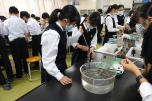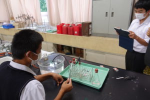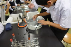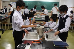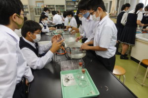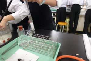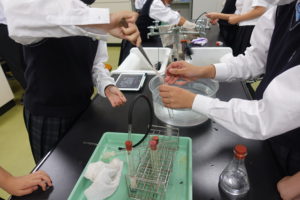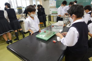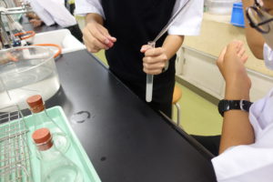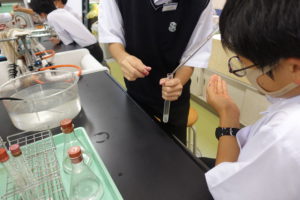 生徒たちはどのような気体か予想しながら、みんな熱心に実験をしていました。
