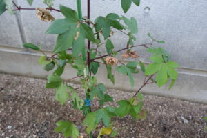 花壇の綿花にはまだ残っている花もあります。