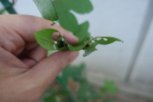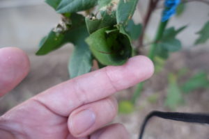 かなりの数の葉が丸まり、中が虫の巣になっているようです。