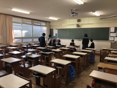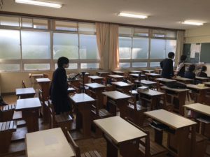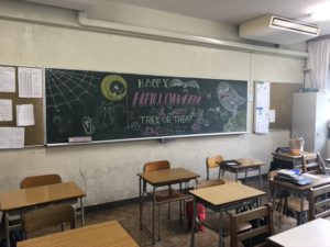 隣の教室では俳句部が活動中。たくさん俳句を板書して何やら話し合いをしている。