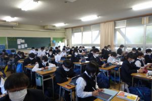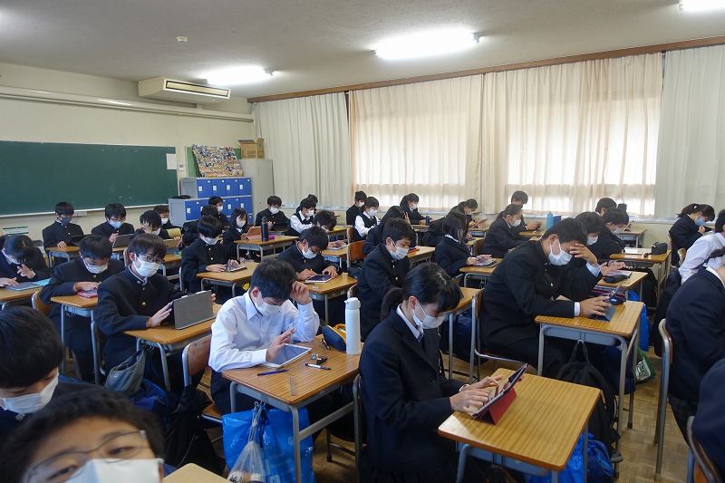 本日の中1LHR(ロングホームルーム)では、現在の学習状況の振り返りと今後の学習への取り組み方について、アンケートをとりました。