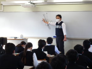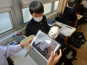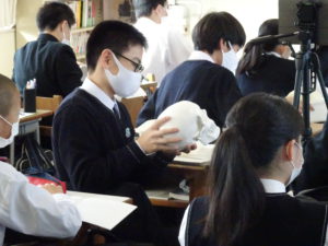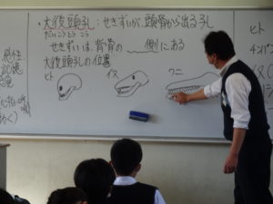 実際に骨の標本を触りながら授業を聞くことで、生徒も楽しく、具体的なイメージを頭に思い浮かべながら、授業を受けられていました。