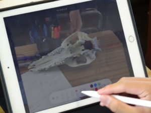 タブレットで写真を撮ってメモを書き込んでいる生徒も。