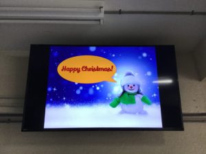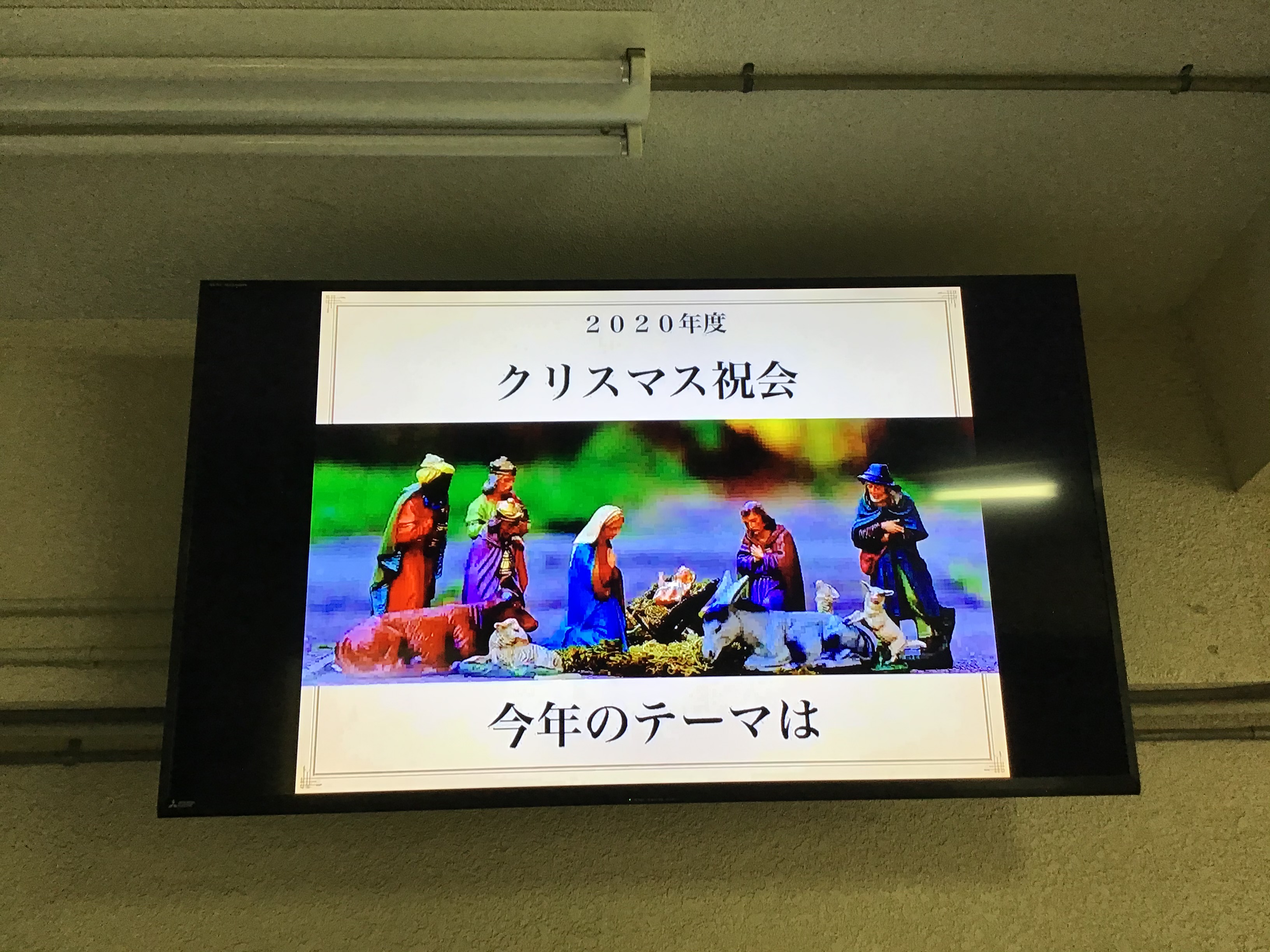 デジタルサイネイジではクリスマス祝会の案内の映像が流れていました。