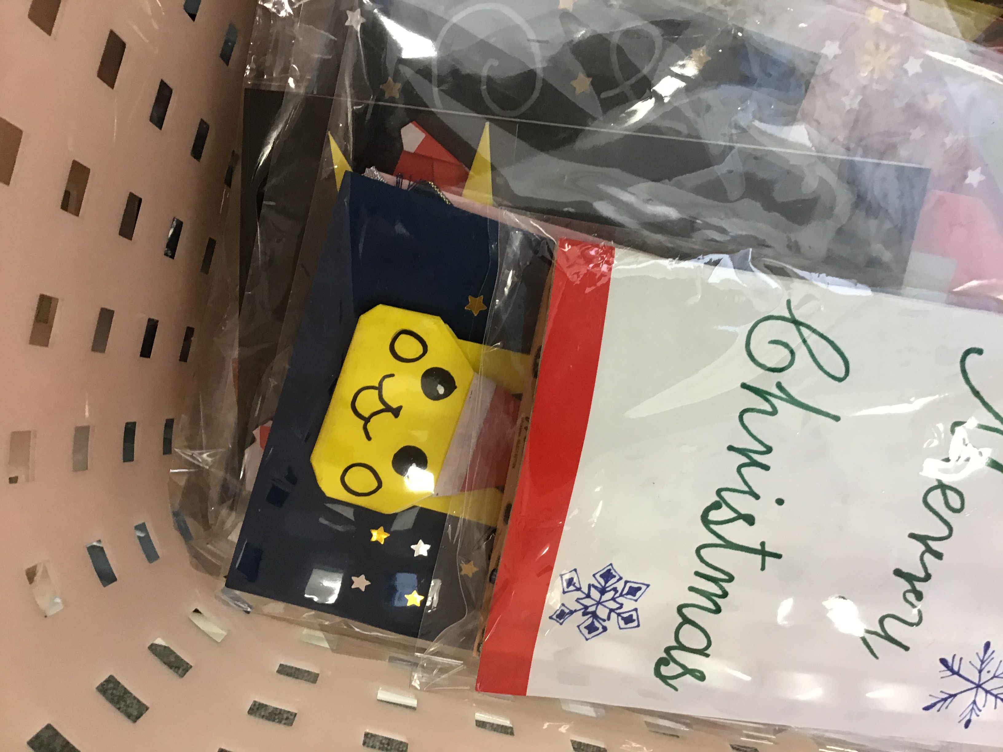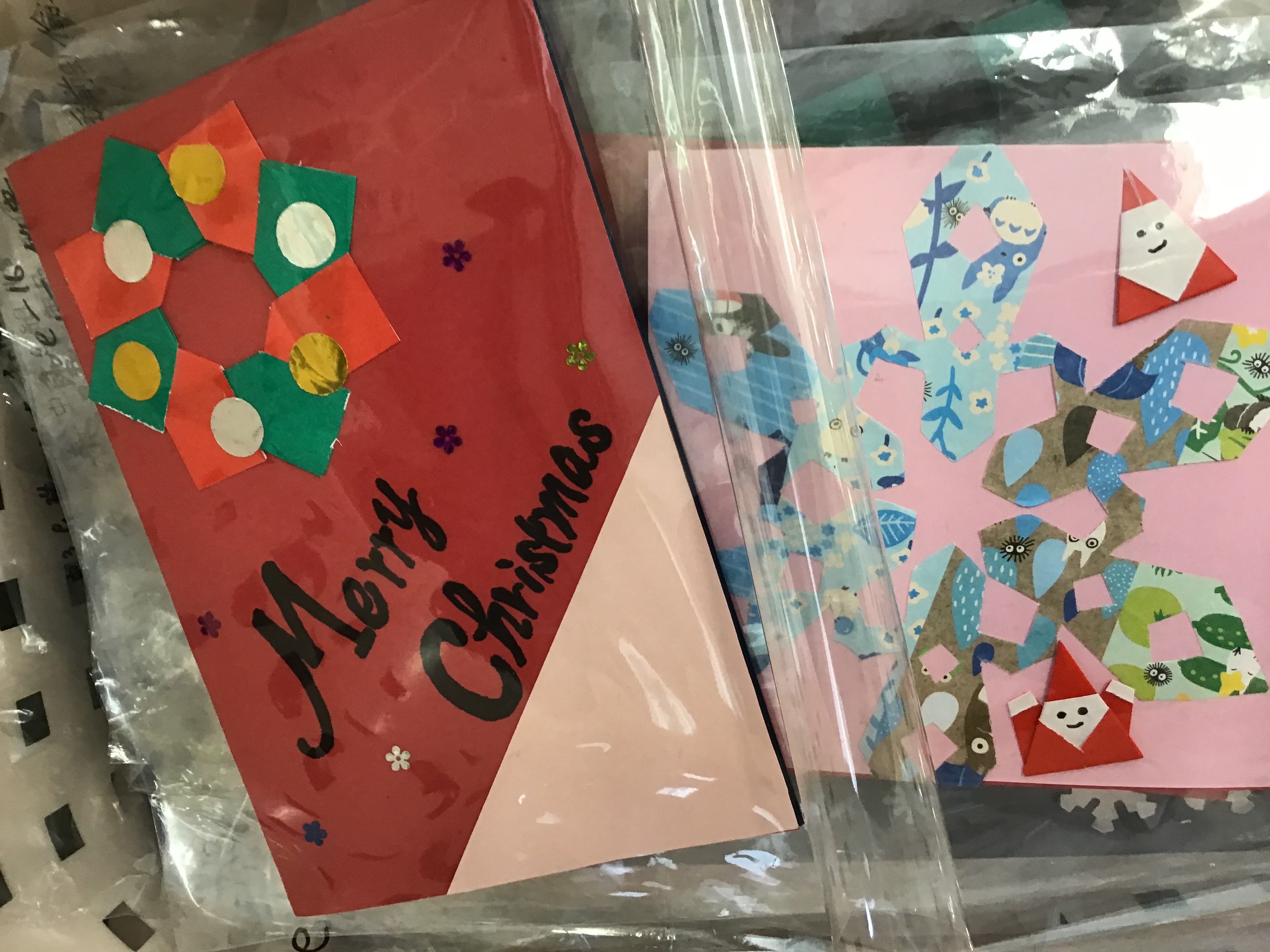 職員室では、家庭科の授業で作成しているクリスマスカードが置かれていました。