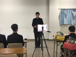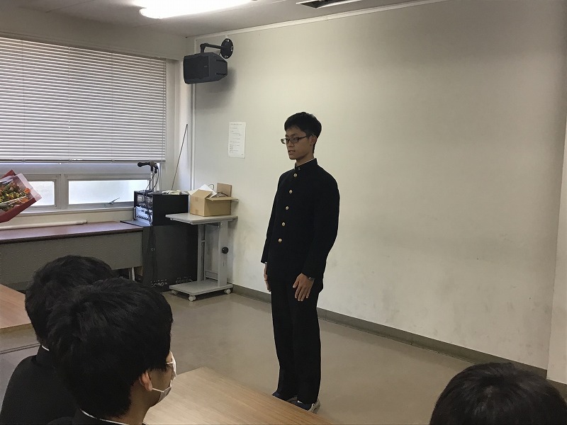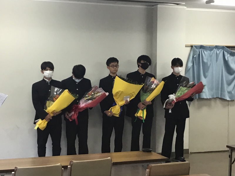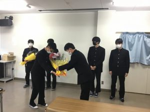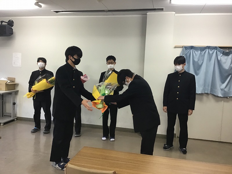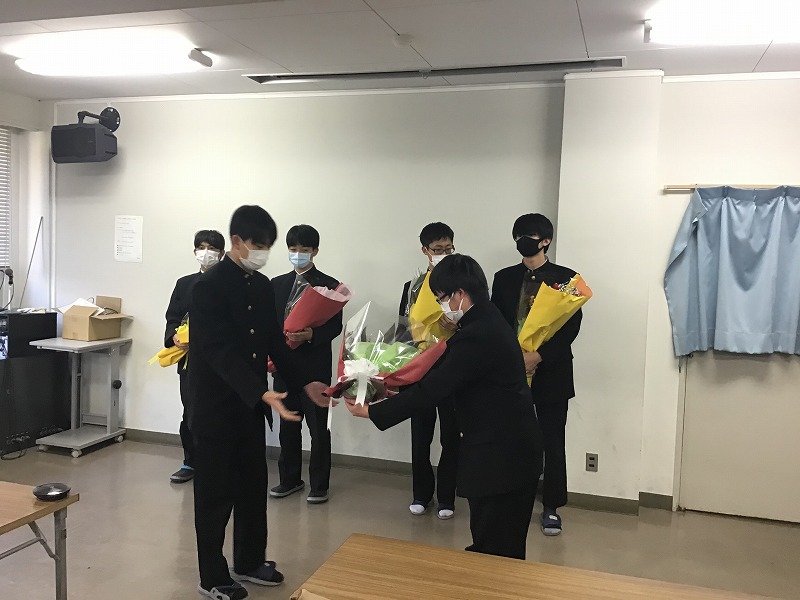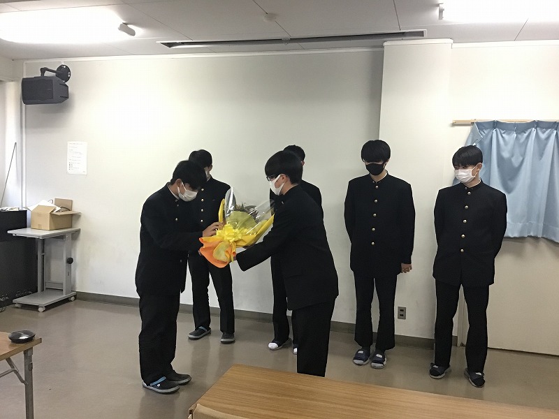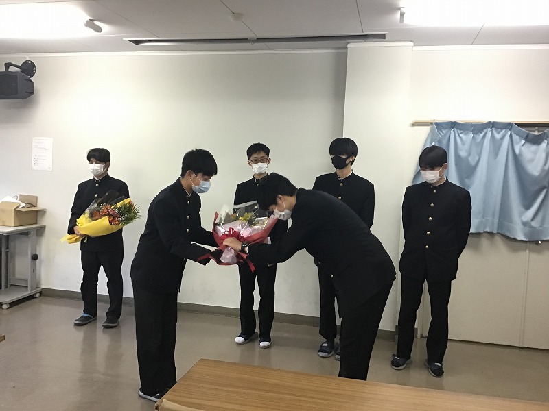 高Ⅱ各クラス議長から高Ⅲ各クラス議長へ花束が贈呈されました。