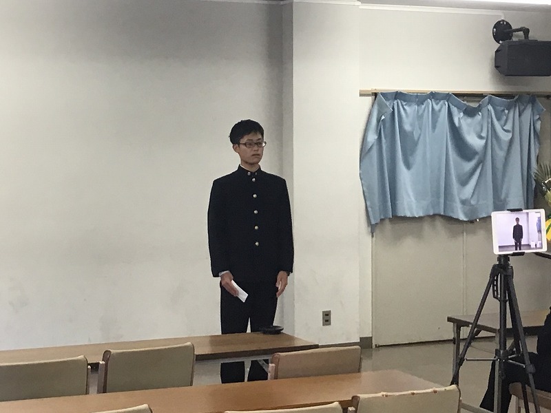 今年は高Ⅱ、高Ⅲ生の代表者のみが会議室に集まり、その他の生徒は自教室からZoomでの参加となりました。