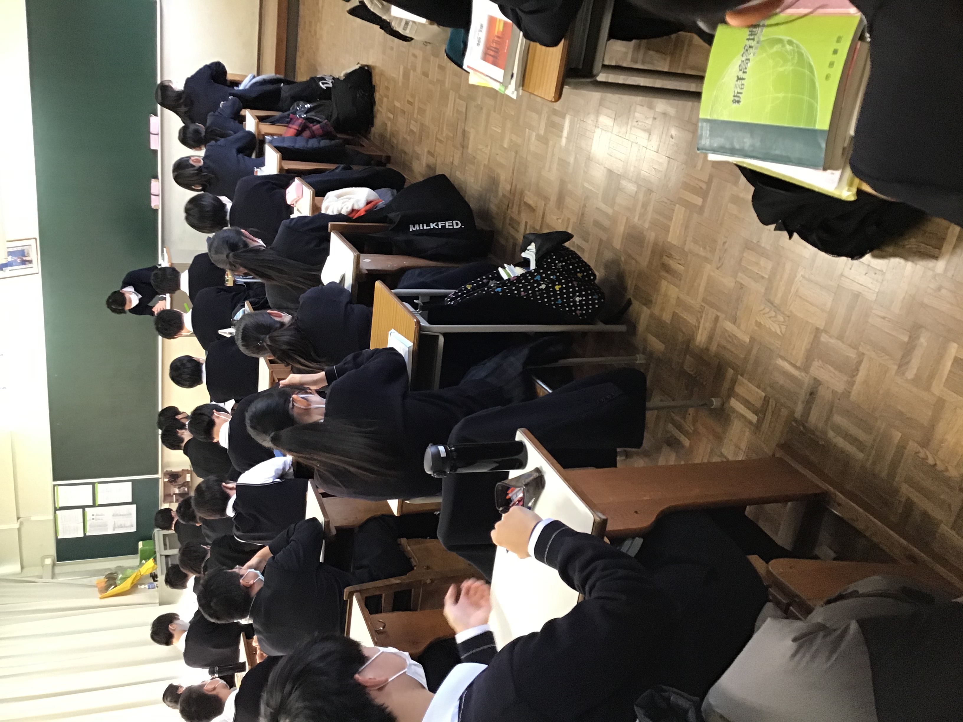 中1~高1は今日から授業が始まりました。中1社会の様子です。