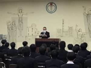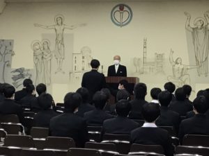 式が始まりました。理事長・寮長・寮長補佐と訓示が続きます。