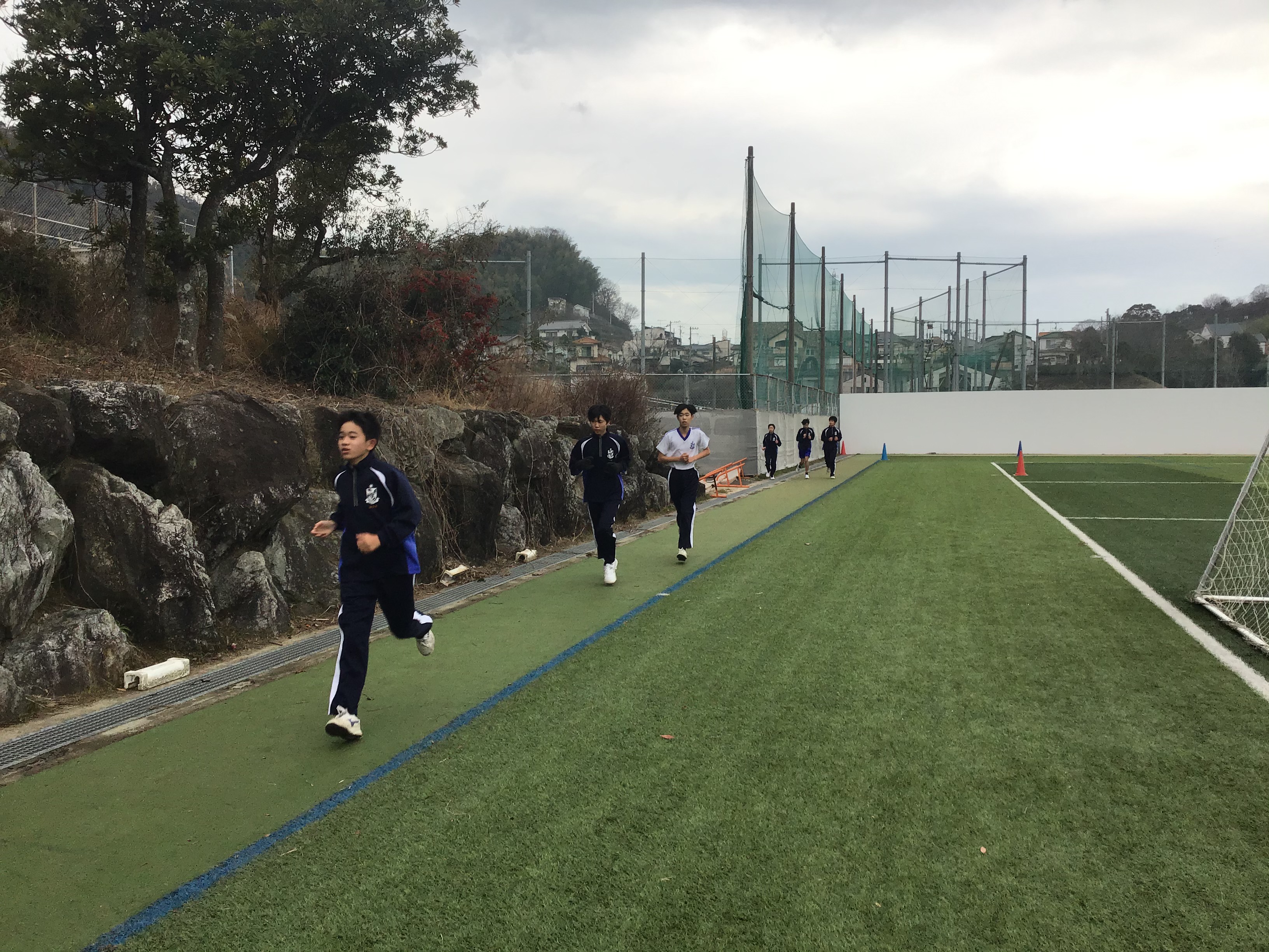 人工芝のトラックを2周走ってから、外周コースに出ます。