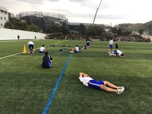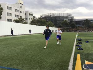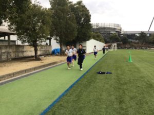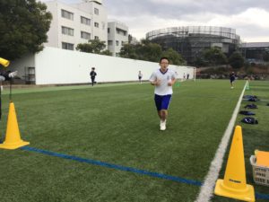 最後に人工芝の特設トラックを走ります。