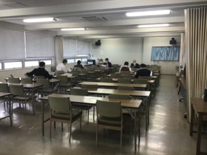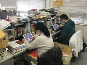 毎週ではありませんが、金曜日の放課後に職員会議を行っております。今年は新型コロナの影響で、一つの会議室に集まりことができません。