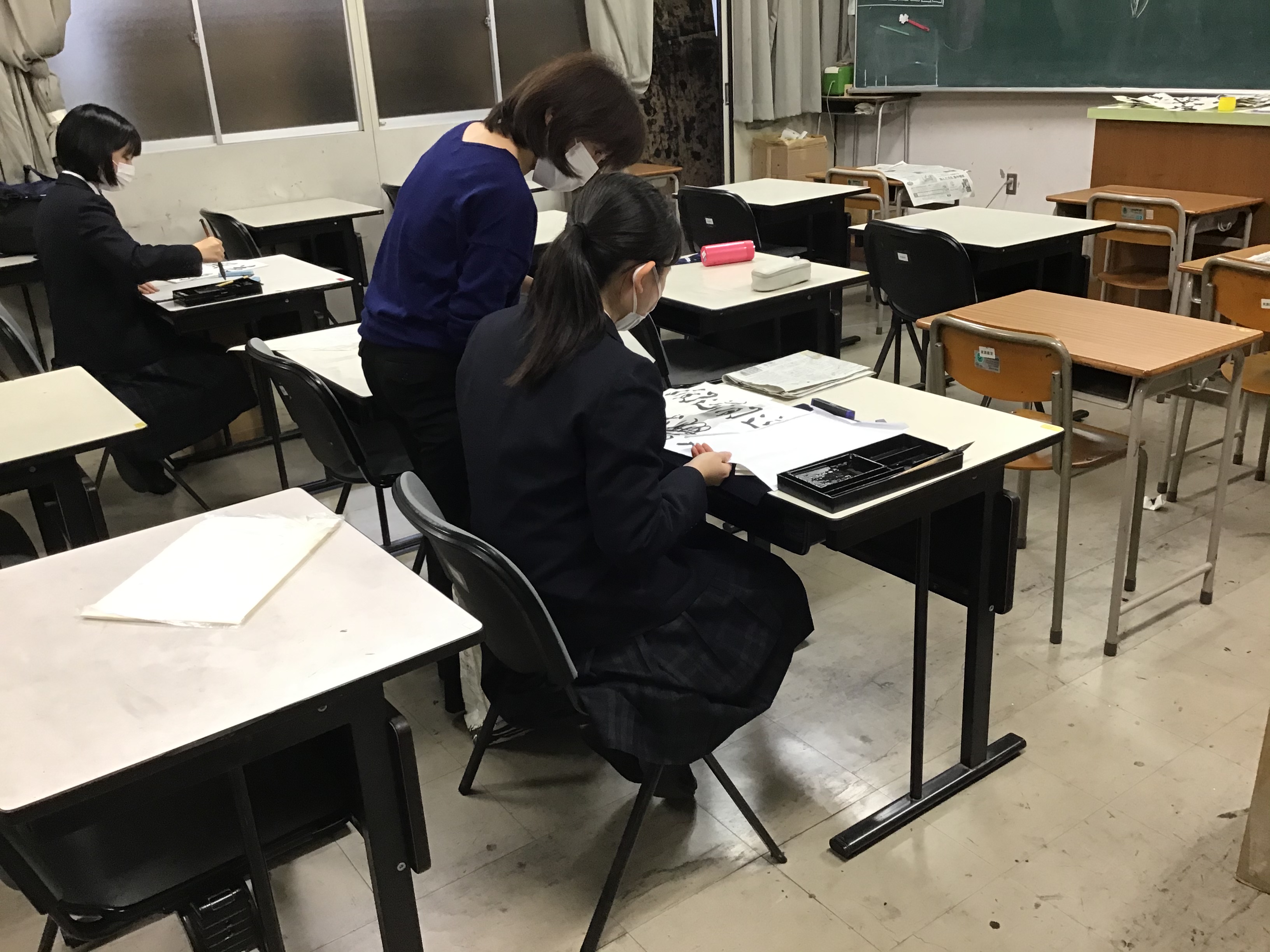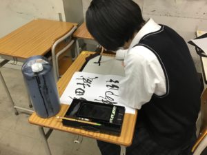今回は書道部の書道教室にお邪魔しました。書道部では部員が距離を取りながら先生の指導を受けて作品作りに励んでいました。コロナ禍の現状において、書道部に限らず、文化部の生徒は各部室で工夫しながら自分たちの活動に打ち込んでいます。頑張れ文化部 !