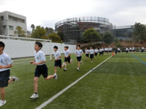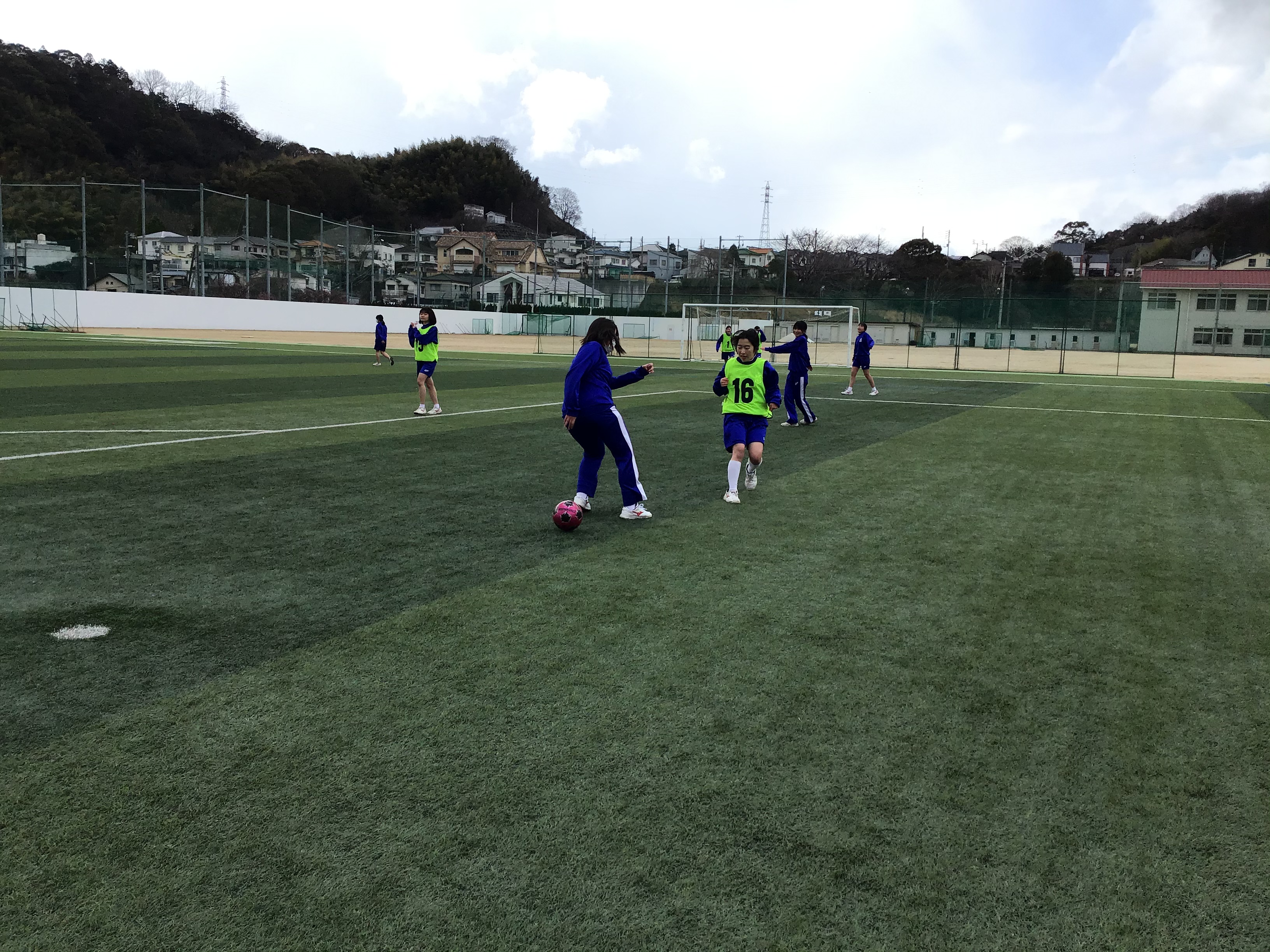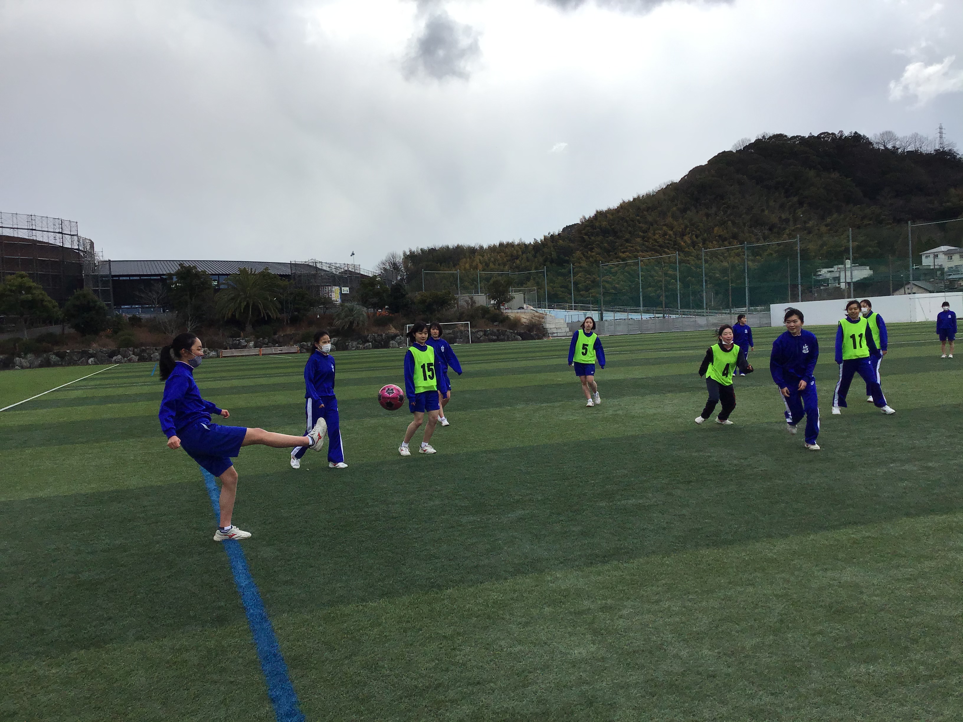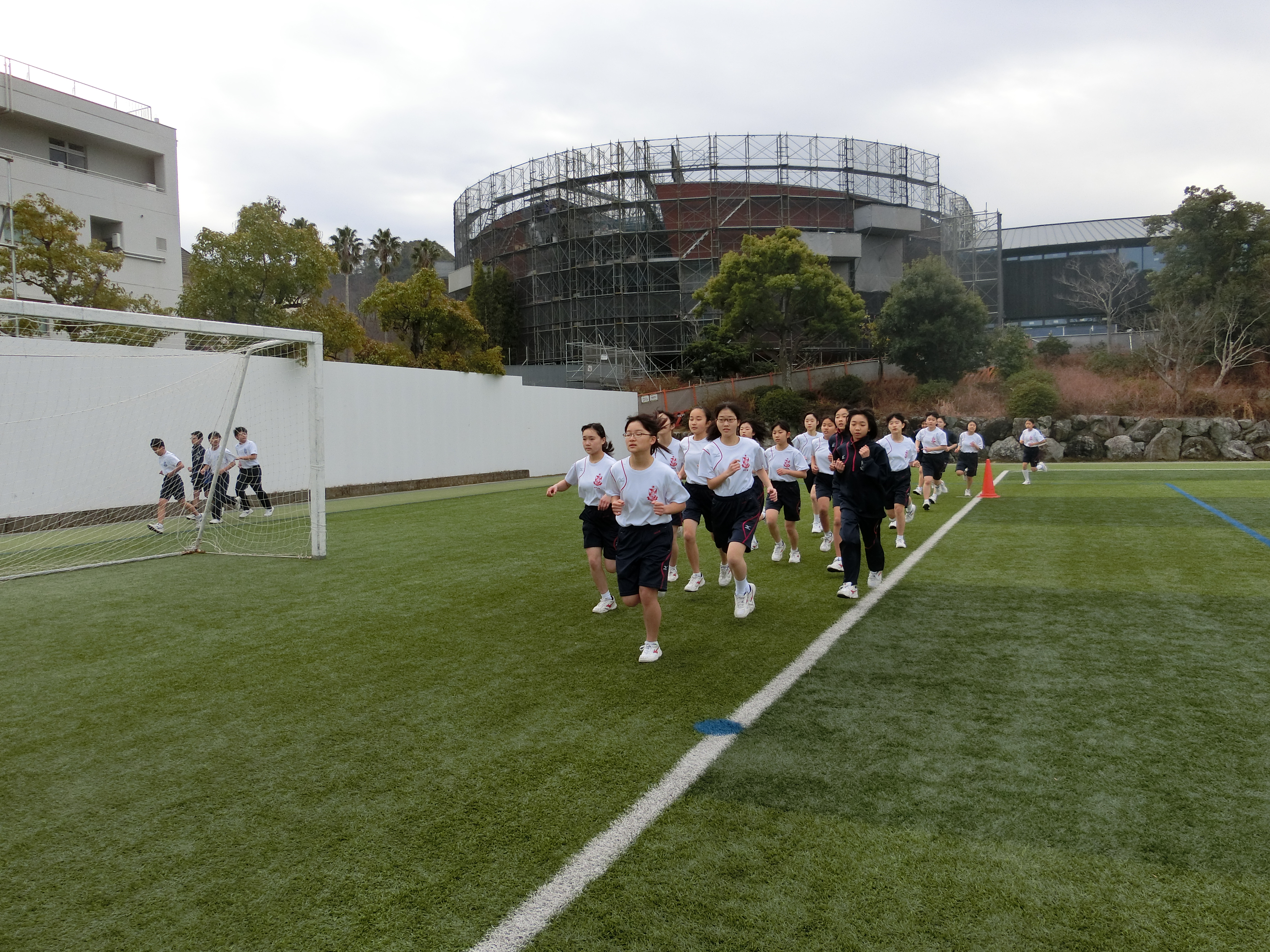 5時間目の中3女子の体育は、強風+小雪が舞い散る中、サッカーを元気に行いました。
