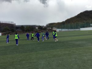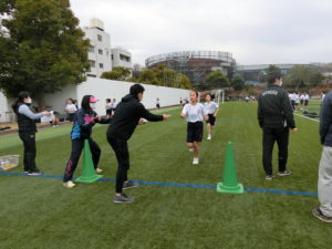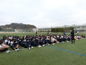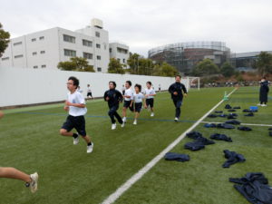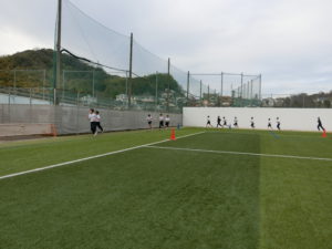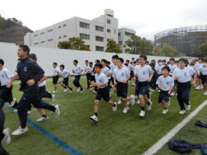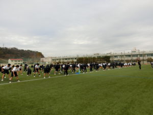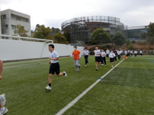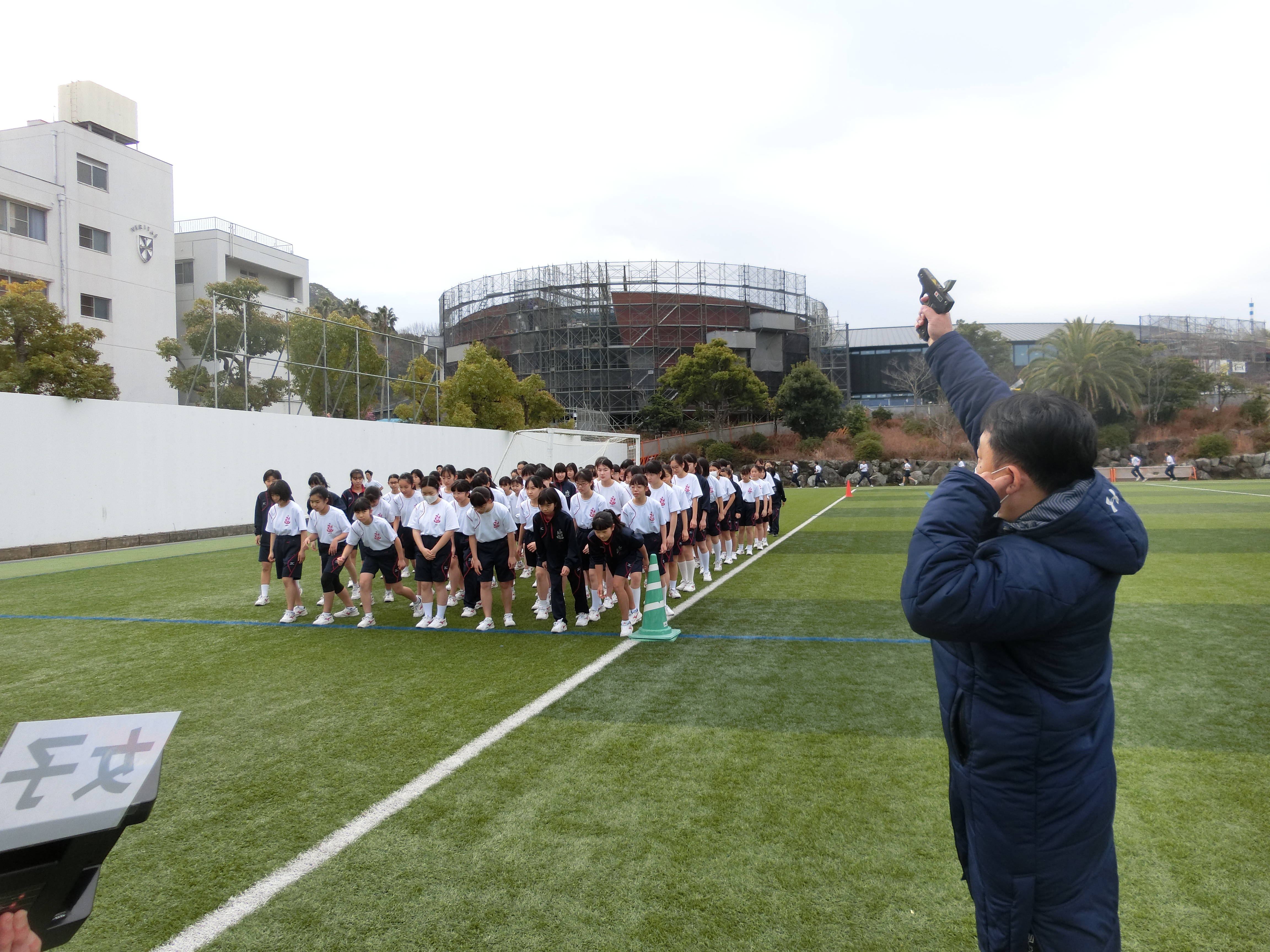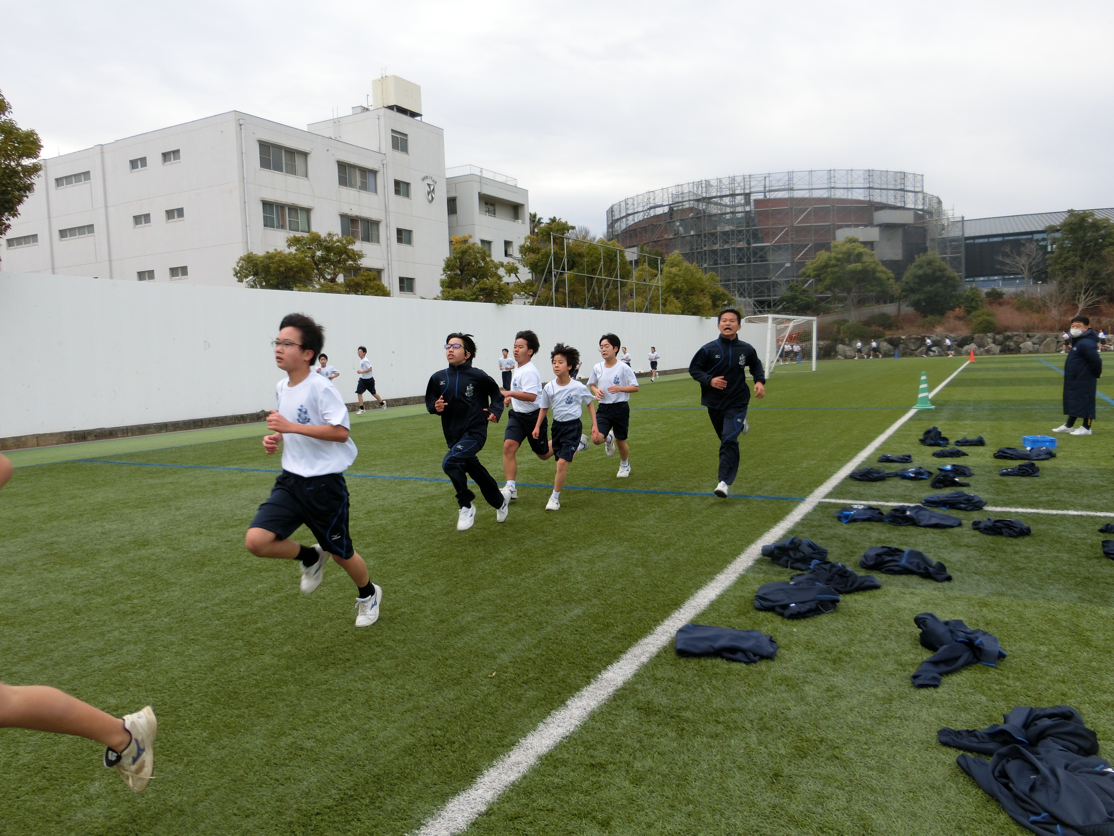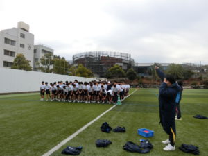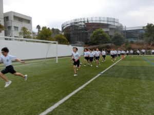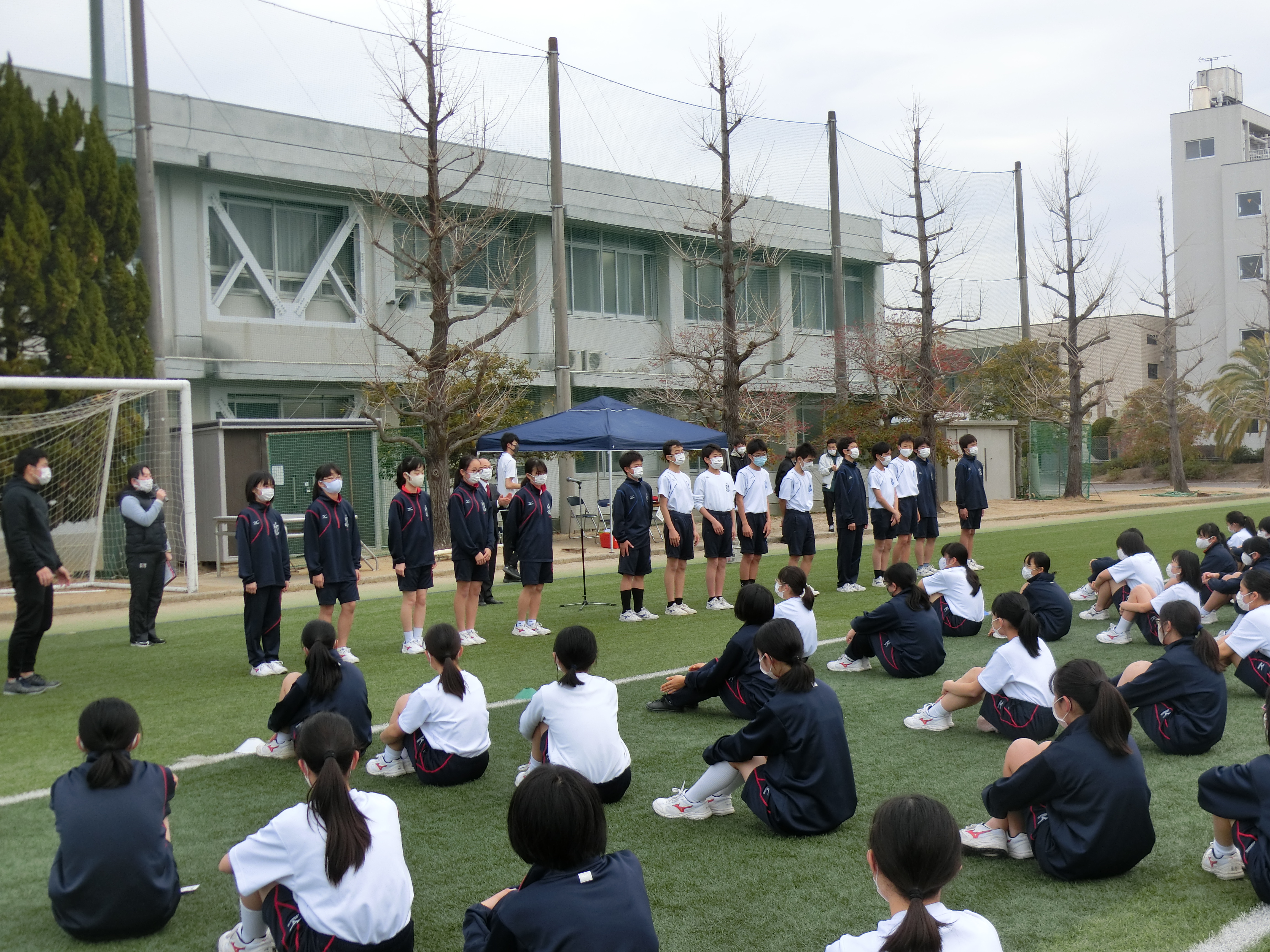 5時間目の中3女子の体育は、強風+小雪が舞い散る中、サッカーを元気に行いました。