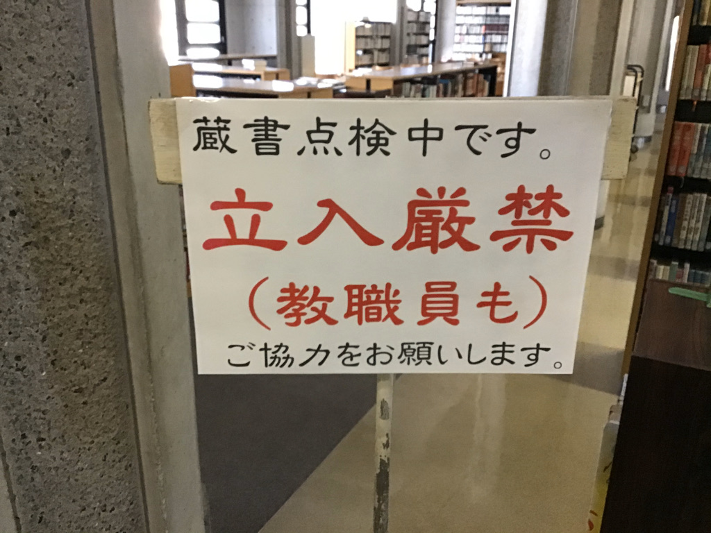 蔵書点検中は教職員といえども立入禁止です。