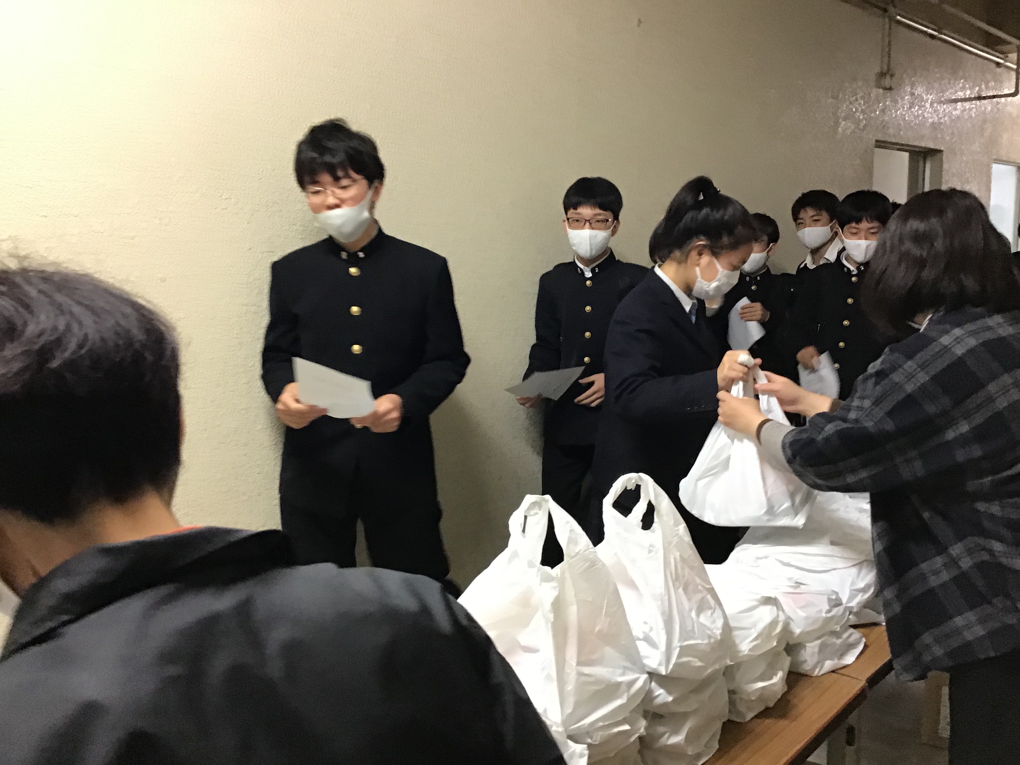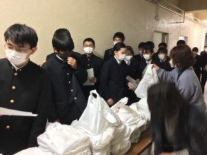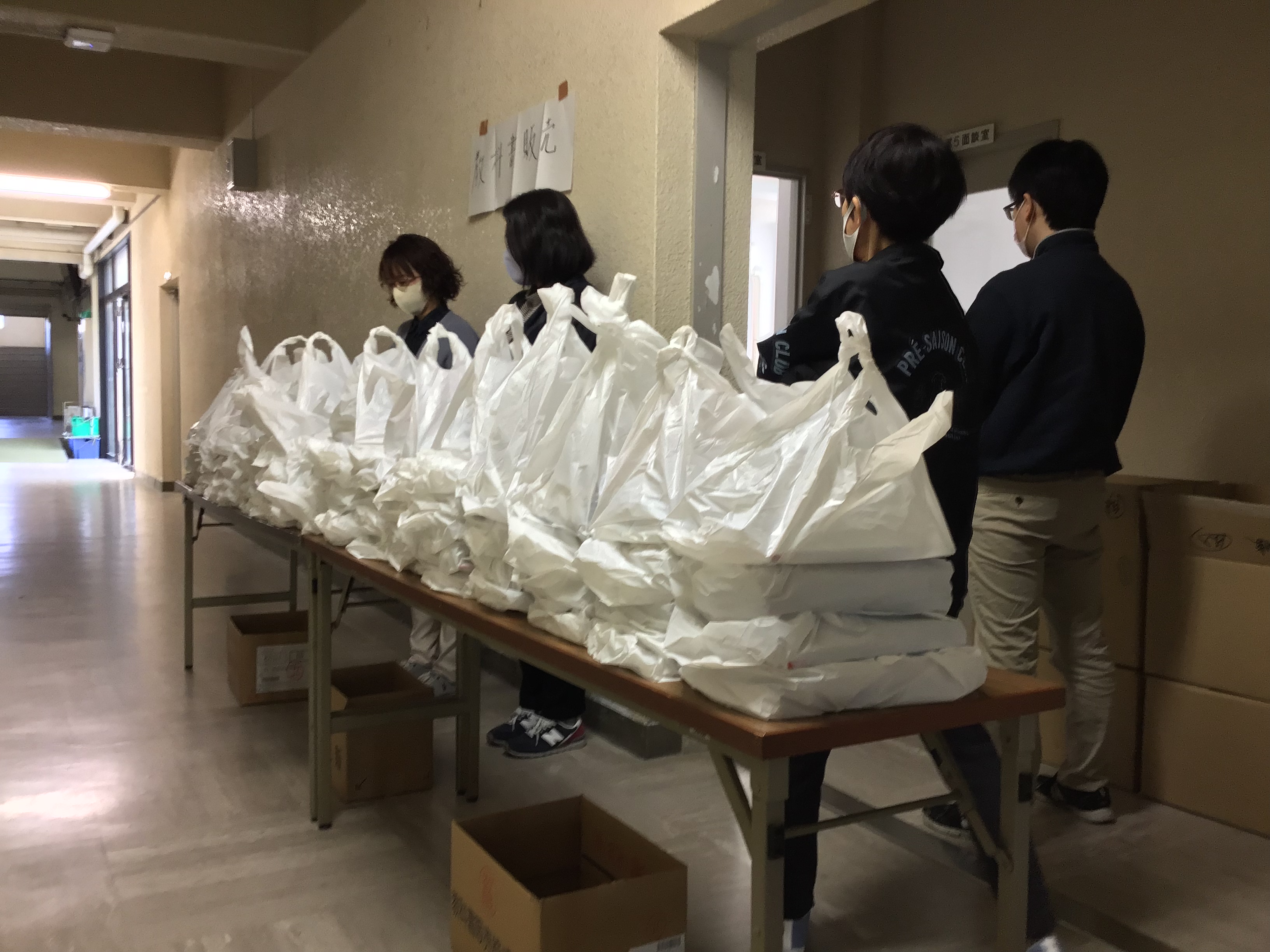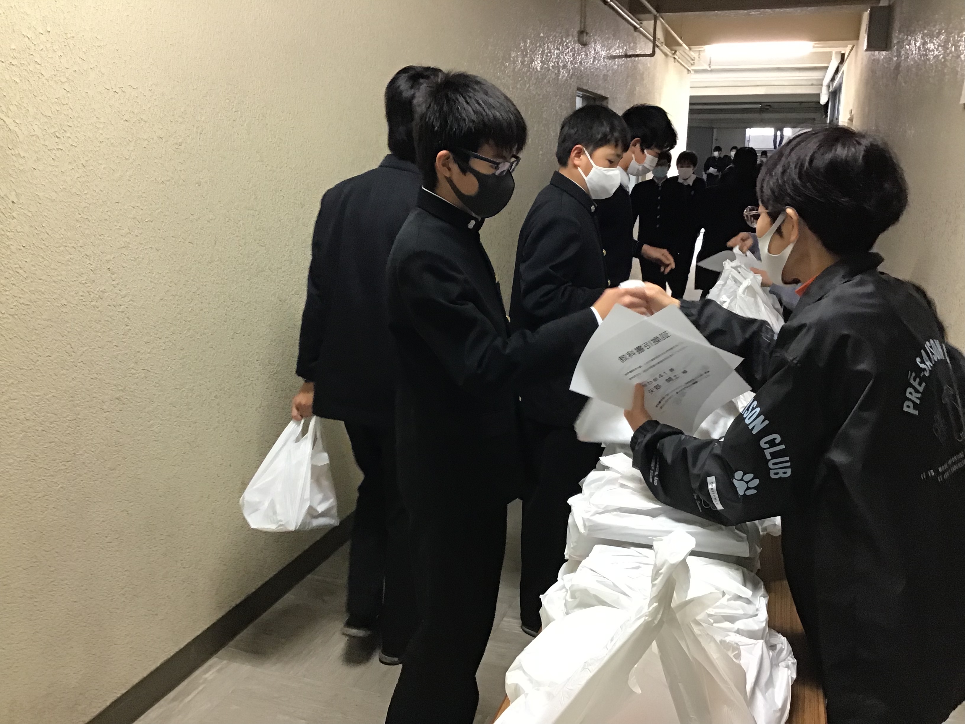 準備のできたものの配付が行われます。今日は現中2生が対象です。