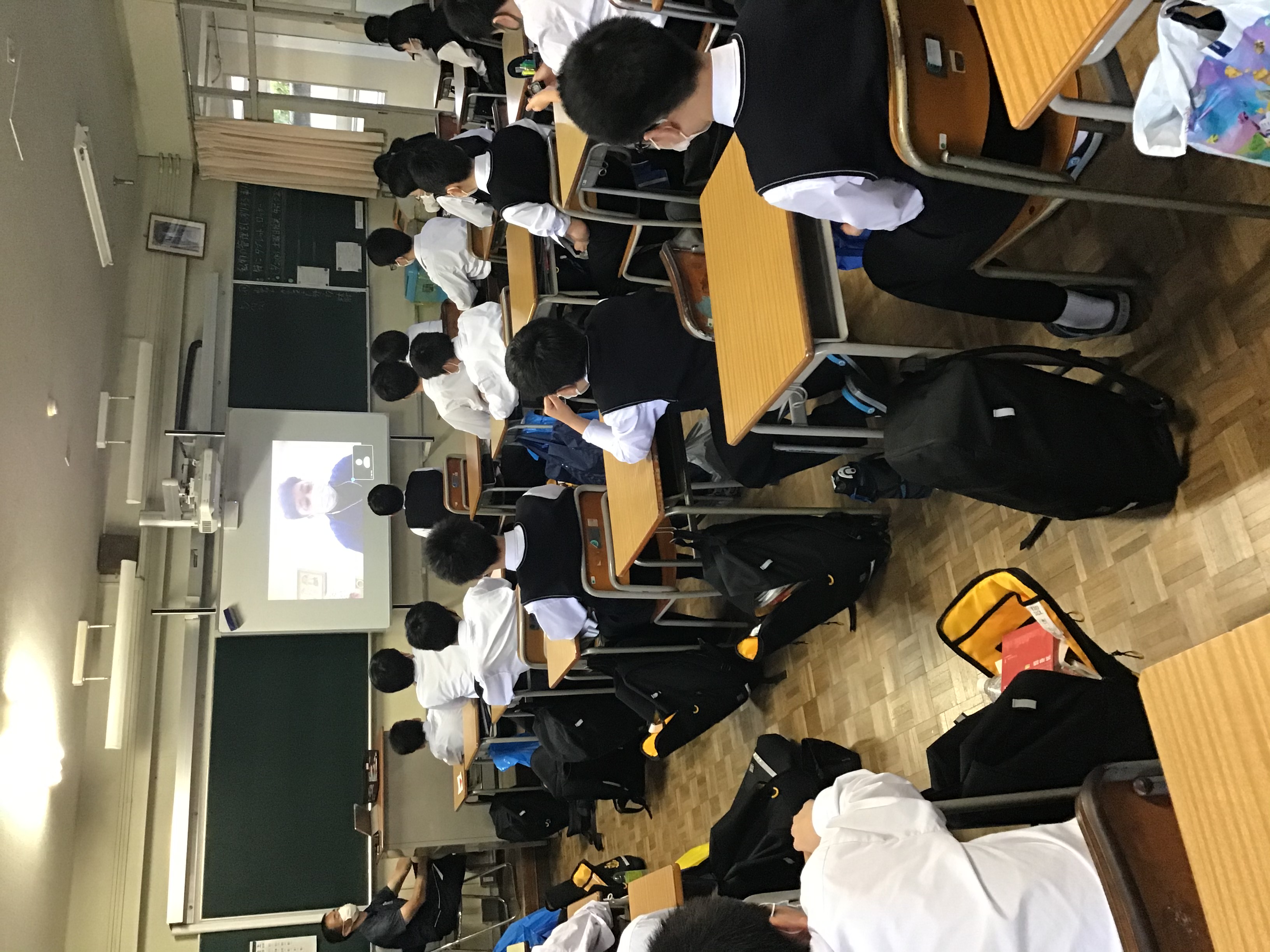 本日のLHRはロイロノートの使い方です。学年部長,ICT担当教員から説明を受けました。