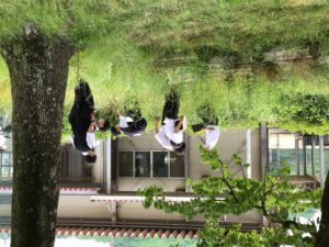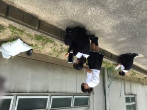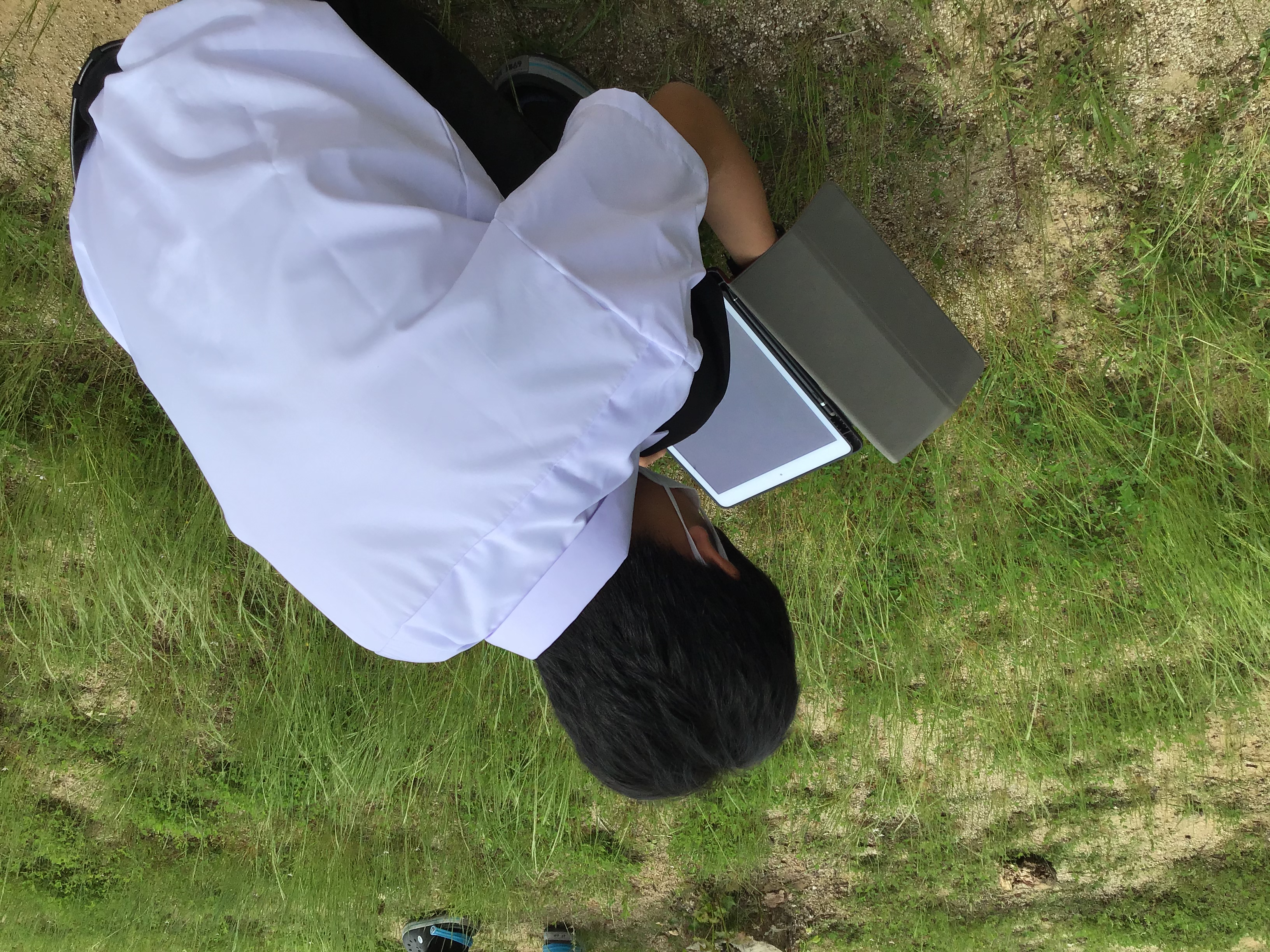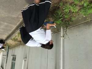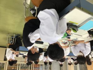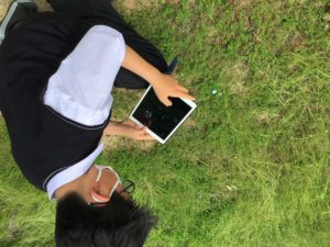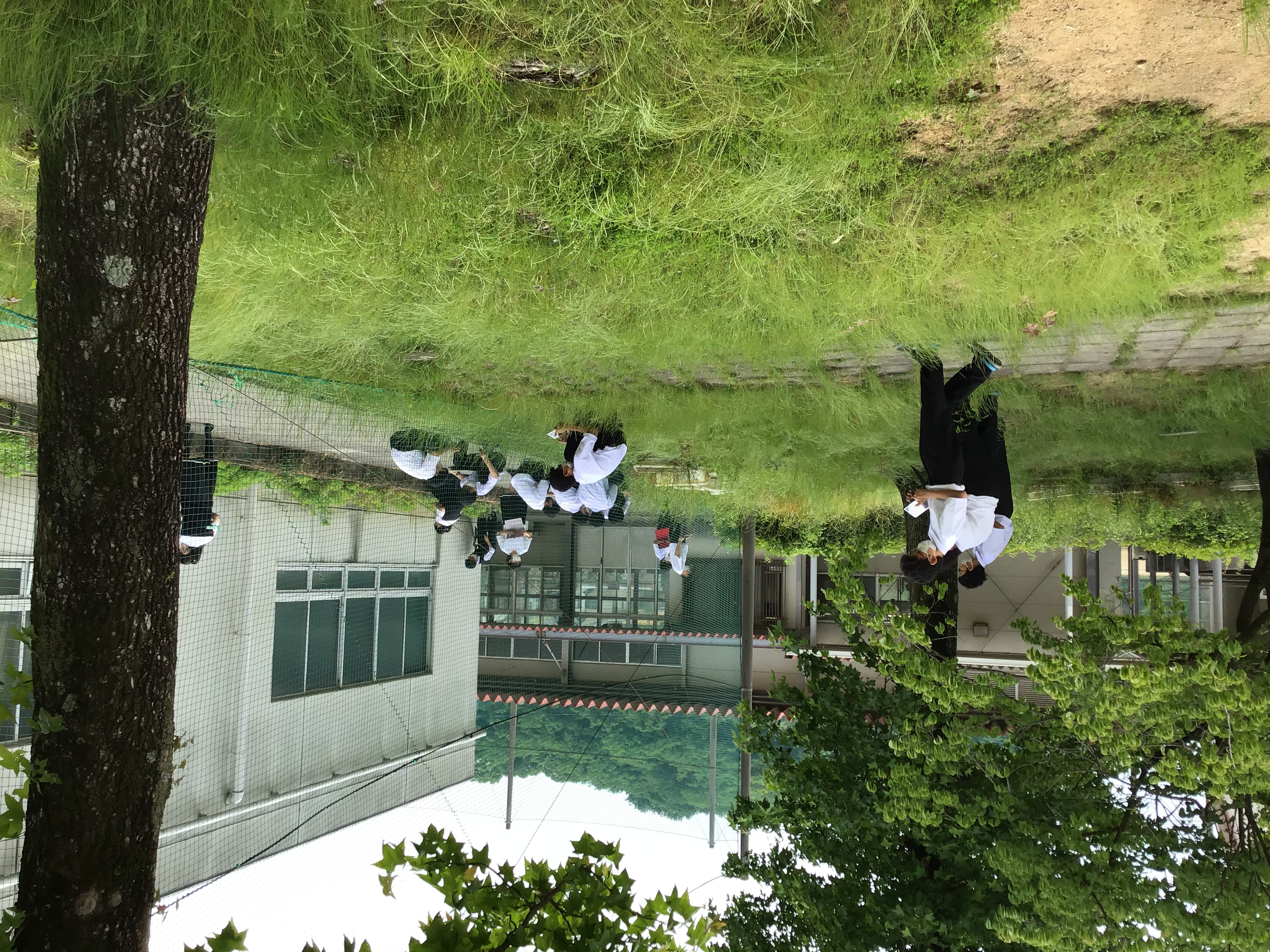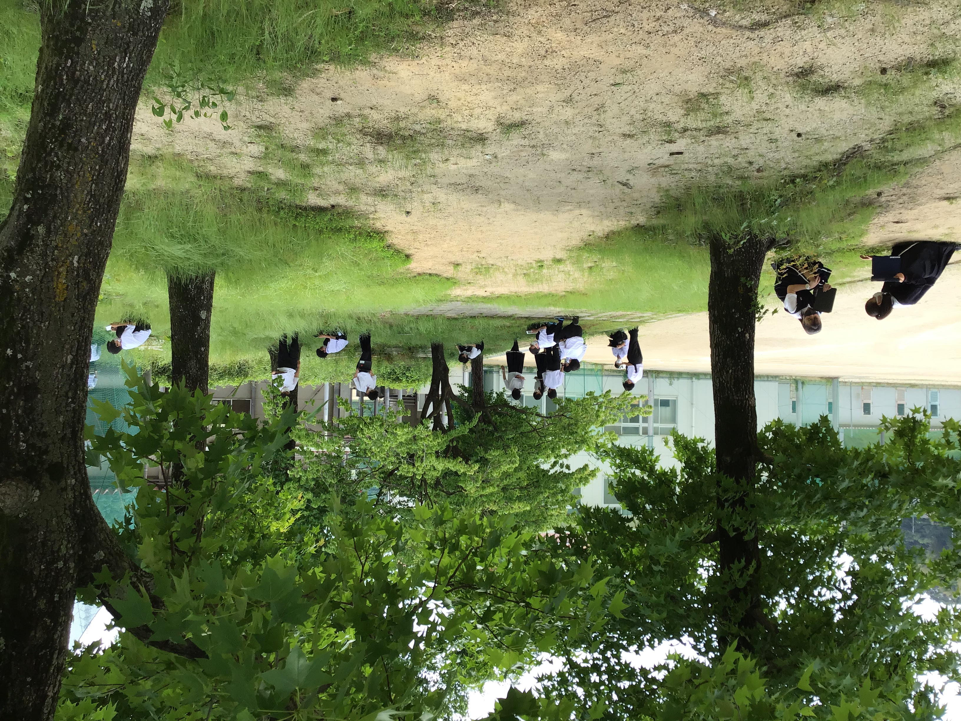 松山は午後から曇りです。中一生の理科3の授業で、教員の指導のもと、校内の雑草の調査が行われました。校内に生えている雑草を見つけ、タブレットを用いてその名称や校内での分布を調べていきます。