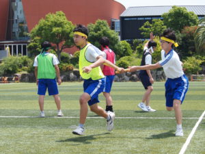 1チーム 女子3名・男子9名でバトンを繋ぎました