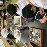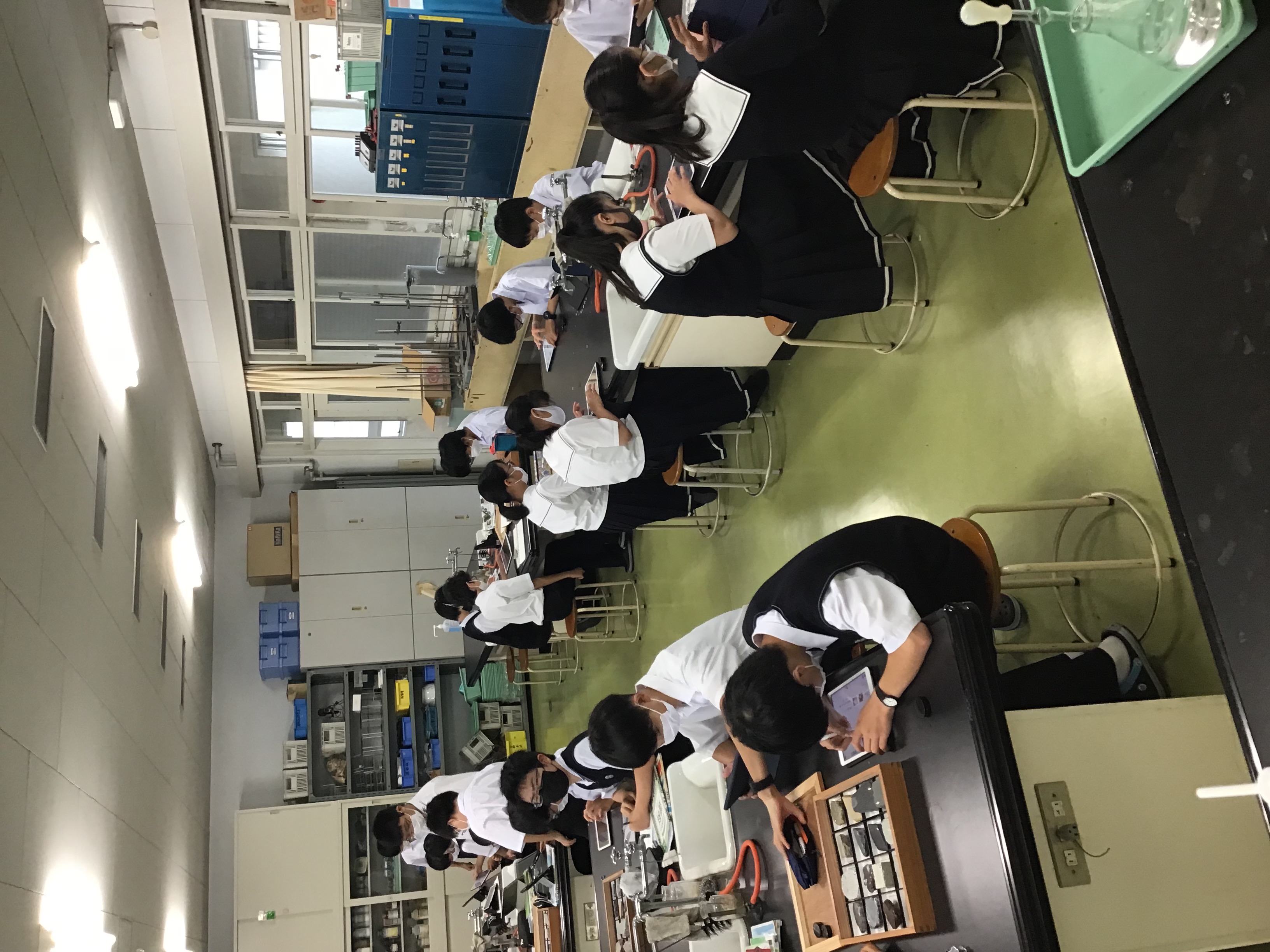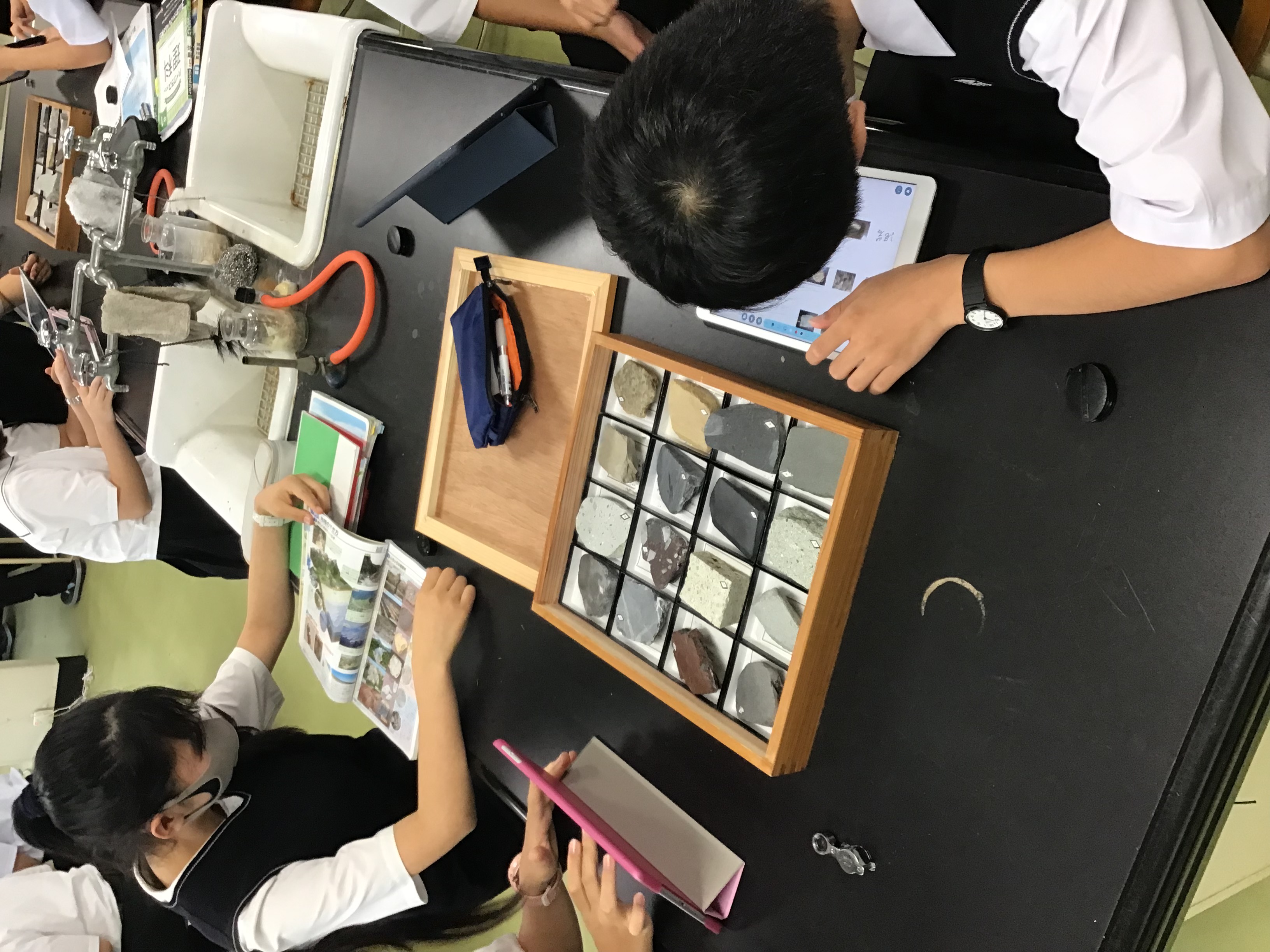 中1の理科2で、堆積岩の観察を行いました。