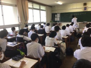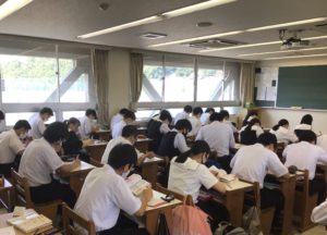 A組:現代文の授業です。漢字テストをしています。ポイントは「抗う」でした。和語でもあるそうですね。