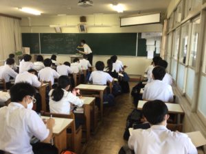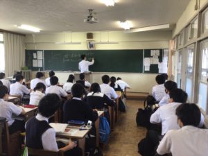 E組:古典の授業です。この時間では、小テストの解答を生徒が答えていました。写真に写っている生徒は……正解を言うことができました!