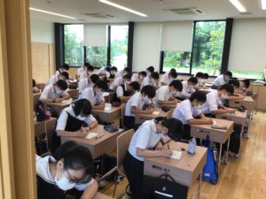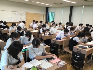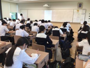 今日は中学3年生の英語1の授業と進路についてのLHR(ロングホームルーム)の様子を見てきました。