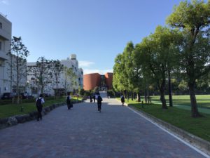 秋の気配も感じ始めました。校内のイチョウの木は、ほんのり紅葉が始まった程度です。