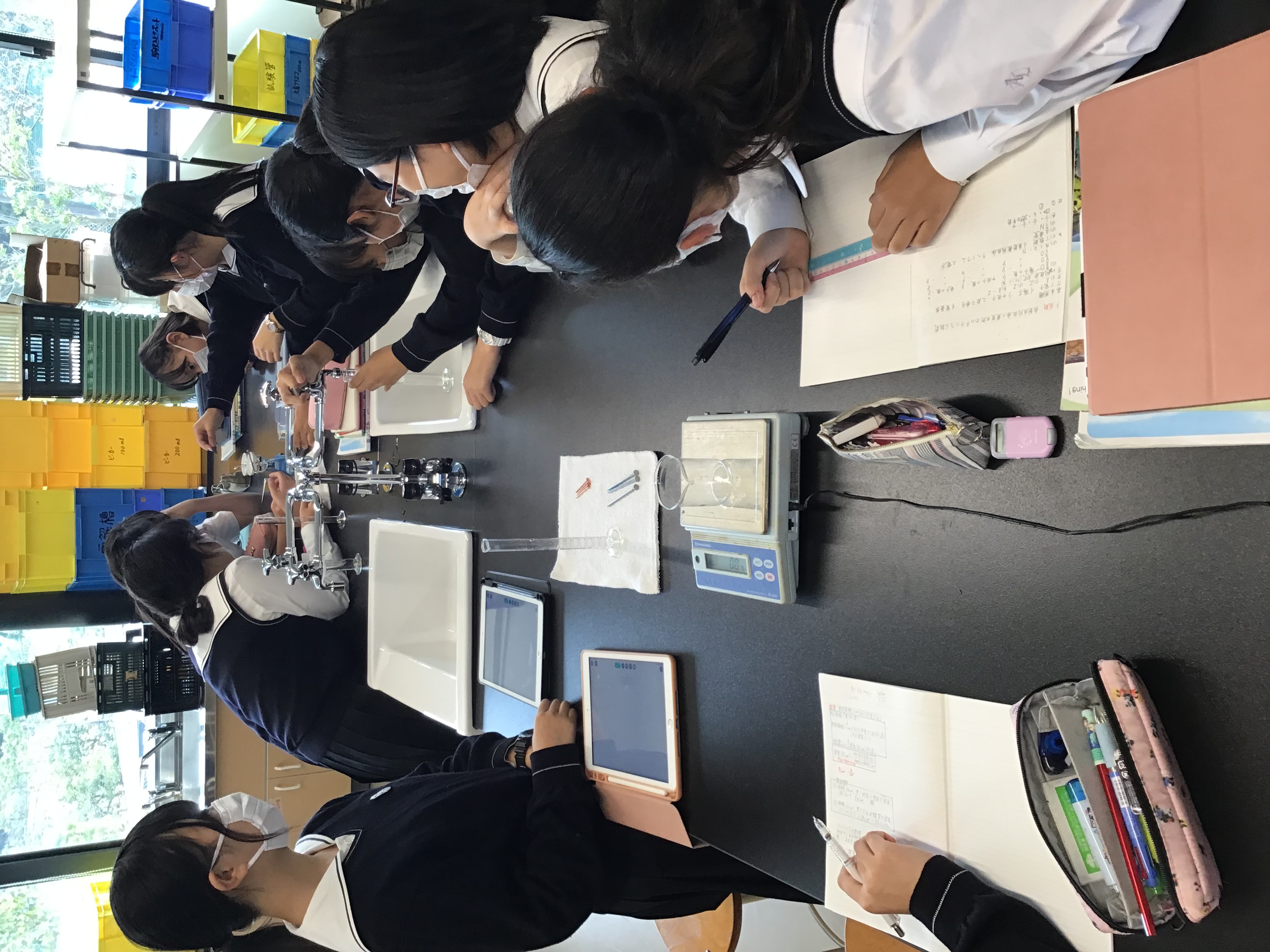 釘の質量と体積を上皿天秤とメスシリンダーを使って材質を調べます。