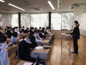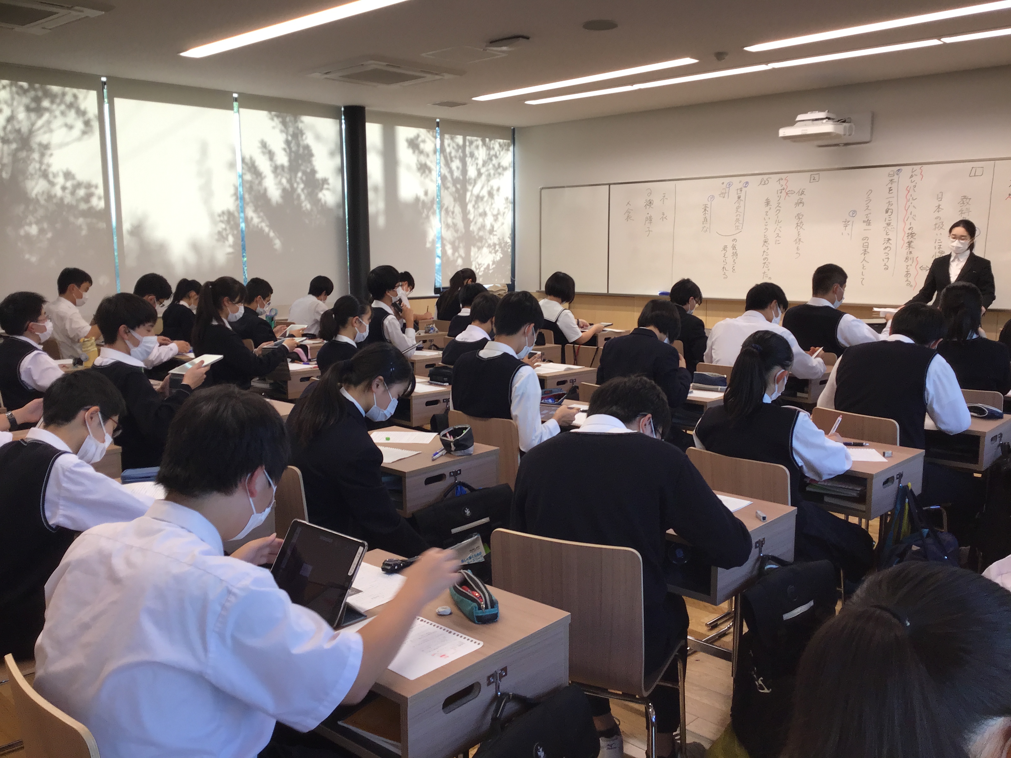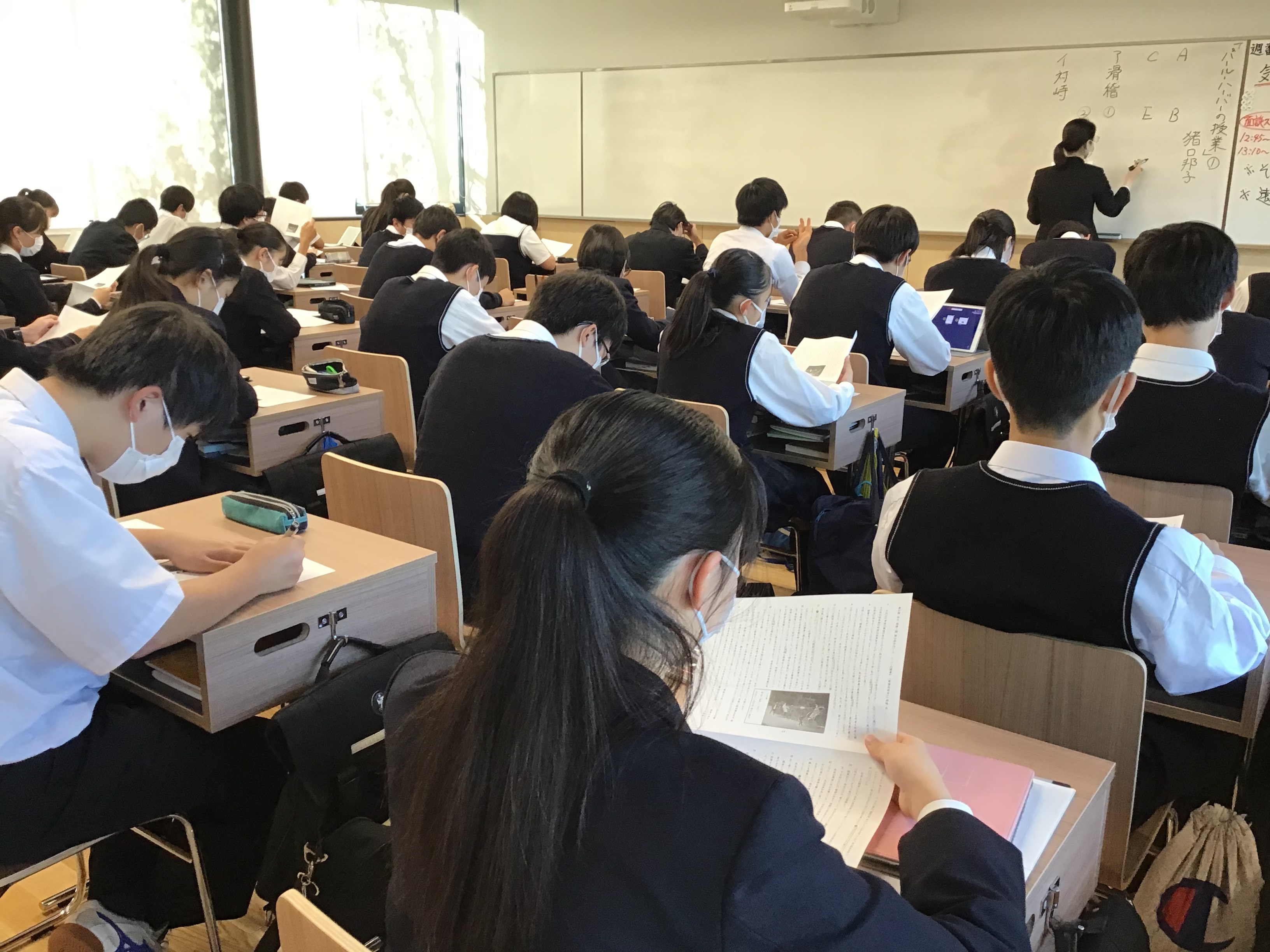 中学3年、国語1で教育実習の先生による授業の様子を見てきました。第60期の卒業生の先生です。