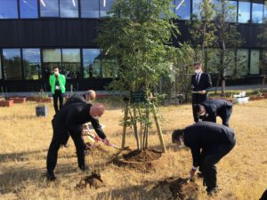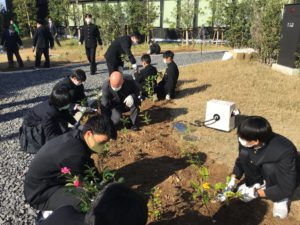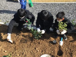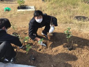 被服教室のある棟の外周へ移動し、シャリンバイなど180株を植樹しました。