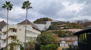 右:東側を見ると,聖ドミニコ寮と松山市総合公園があります。