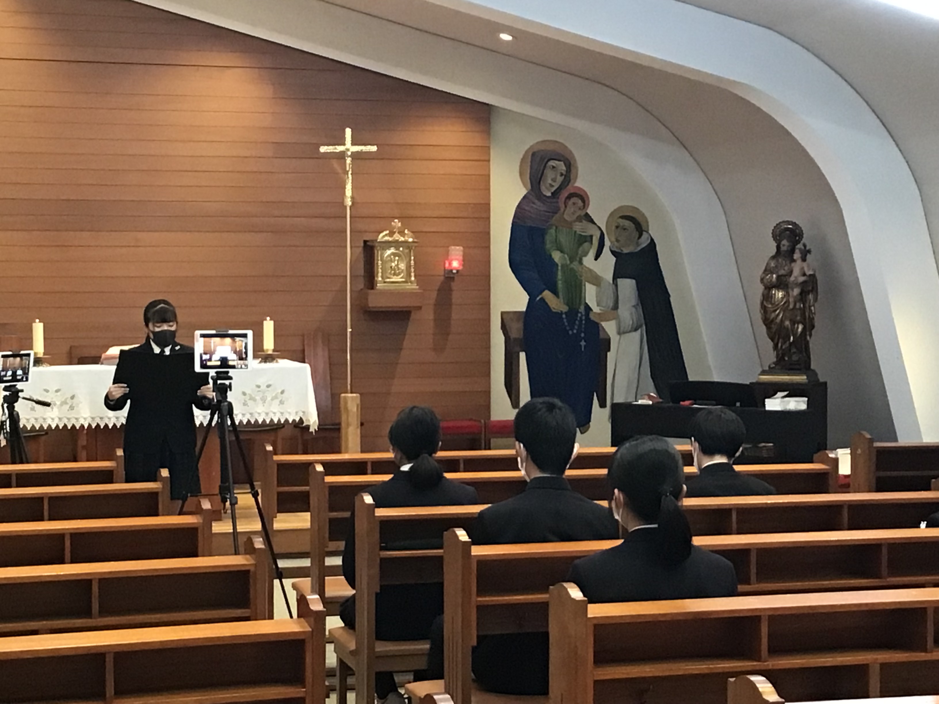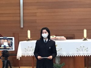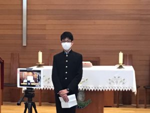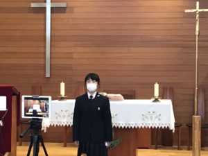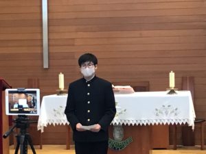 例年ですと、体育館に全校生徒が集まり、色々な催し物が行われますが、今年は会を簡素化し、生徒たちはオンラインにて参加しました。