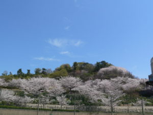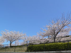 松山市総合公園の満開の桜が生徒たちを迎えてくれました。